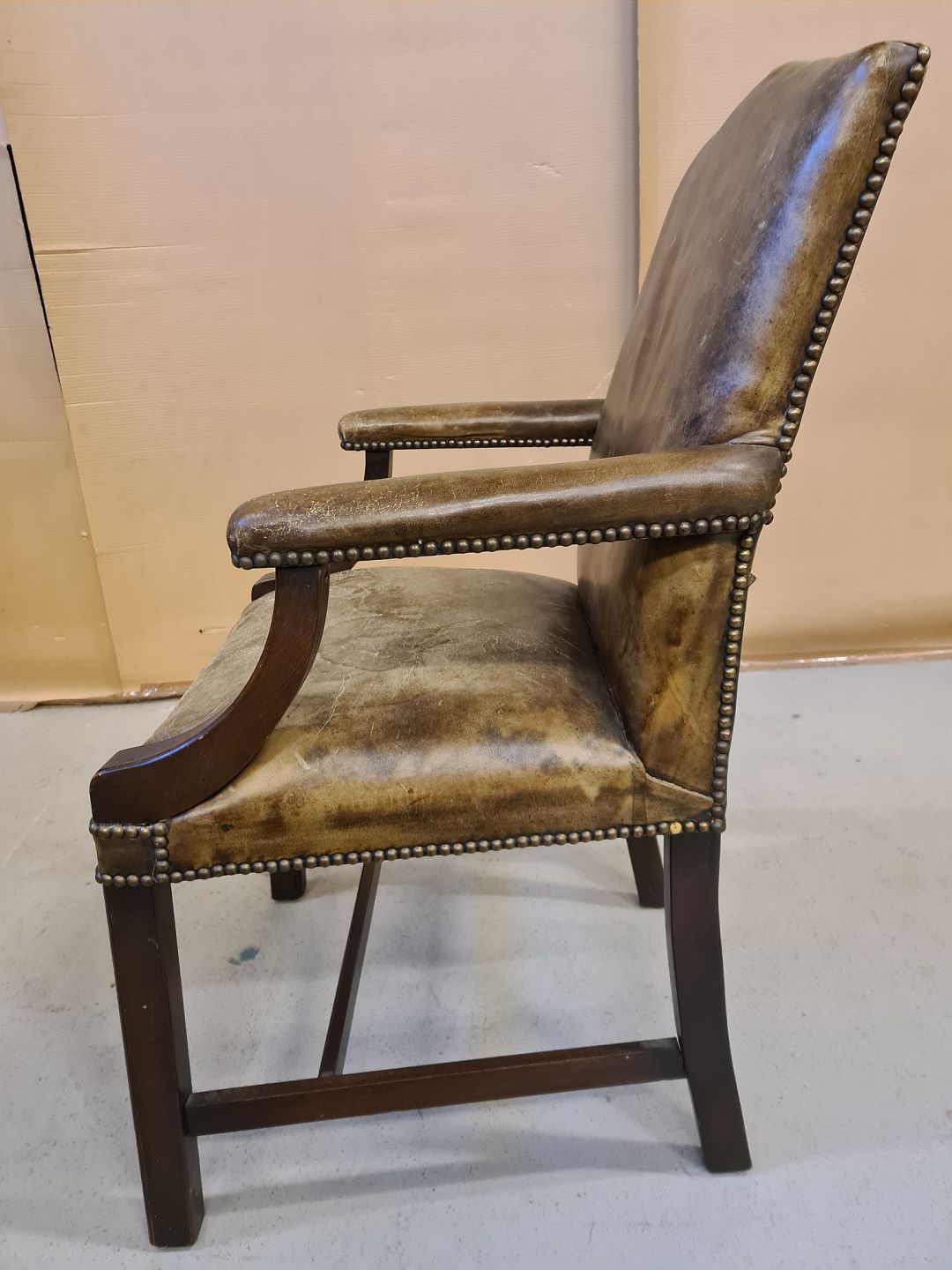 Armstol i mahogni med læder betræk fra 1980erne.