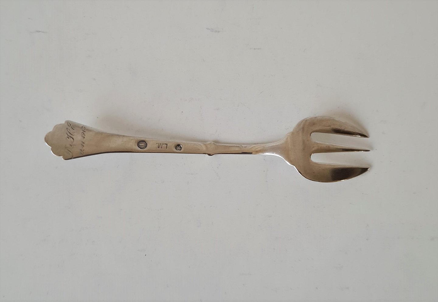 Københavns Porcelain nr. 8 østersgaffel i sølv fra 1911