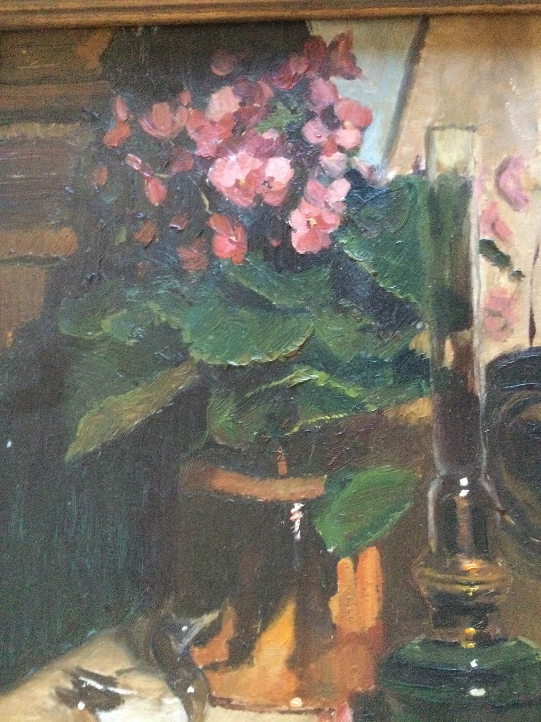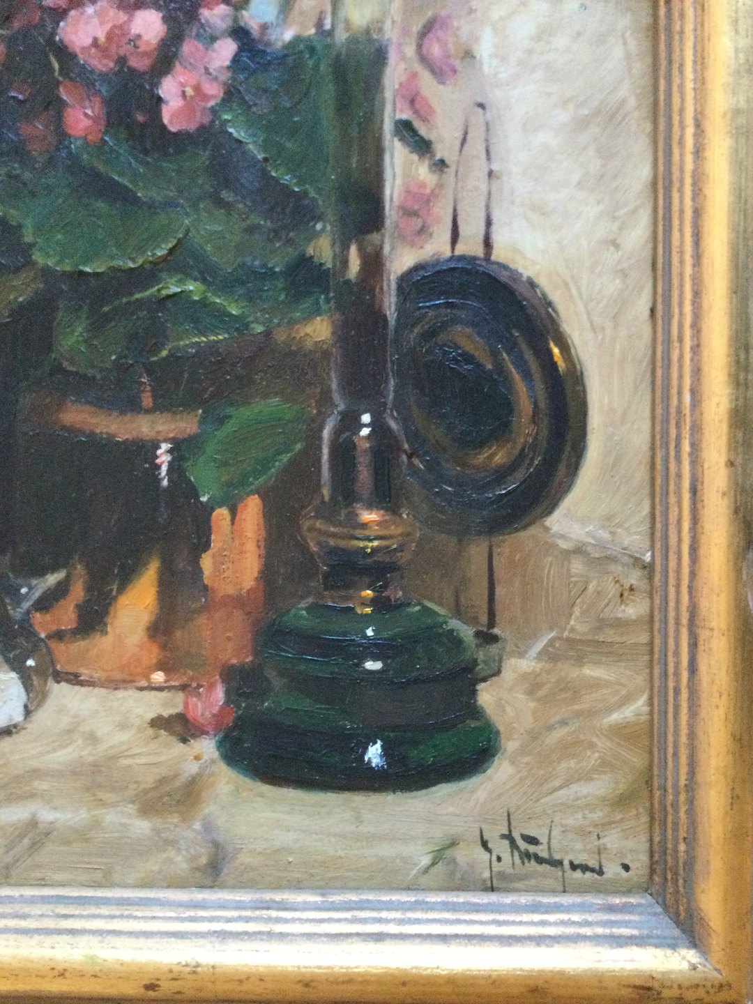 Maleri af Gunner Bundgaard - Opstilling på bord med petroleumslampe.