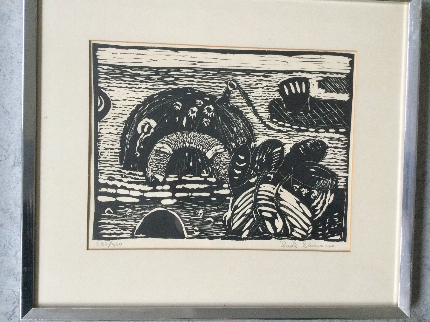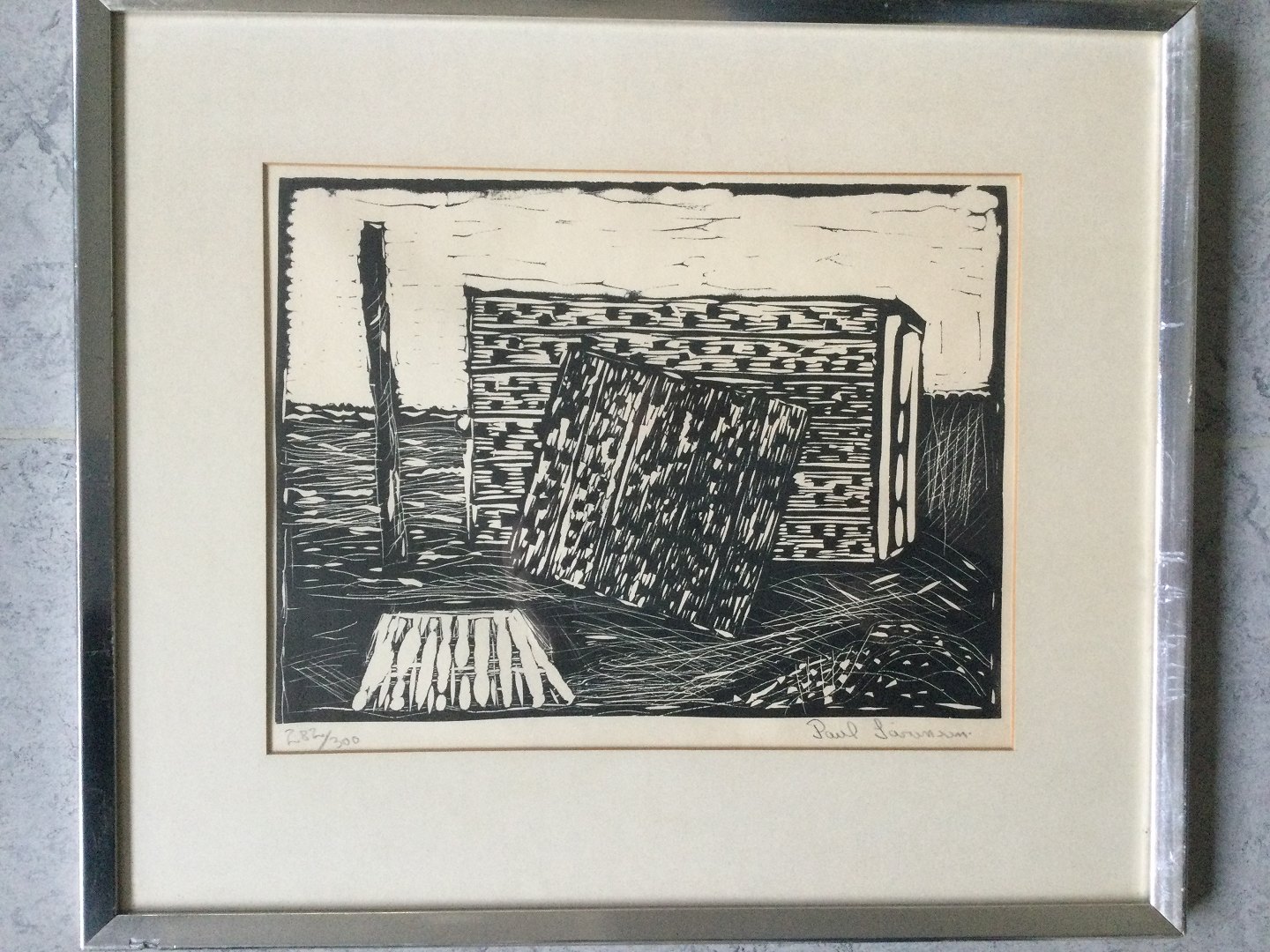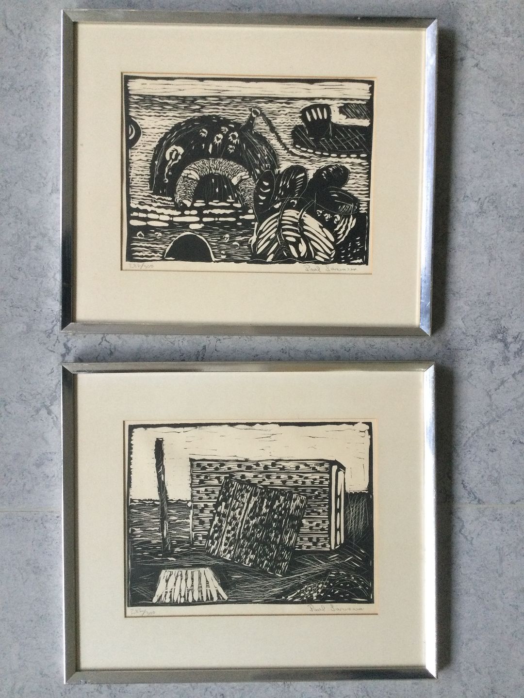 Træsnit af Poul Sørensen - 2 opstillinger med vraggods.