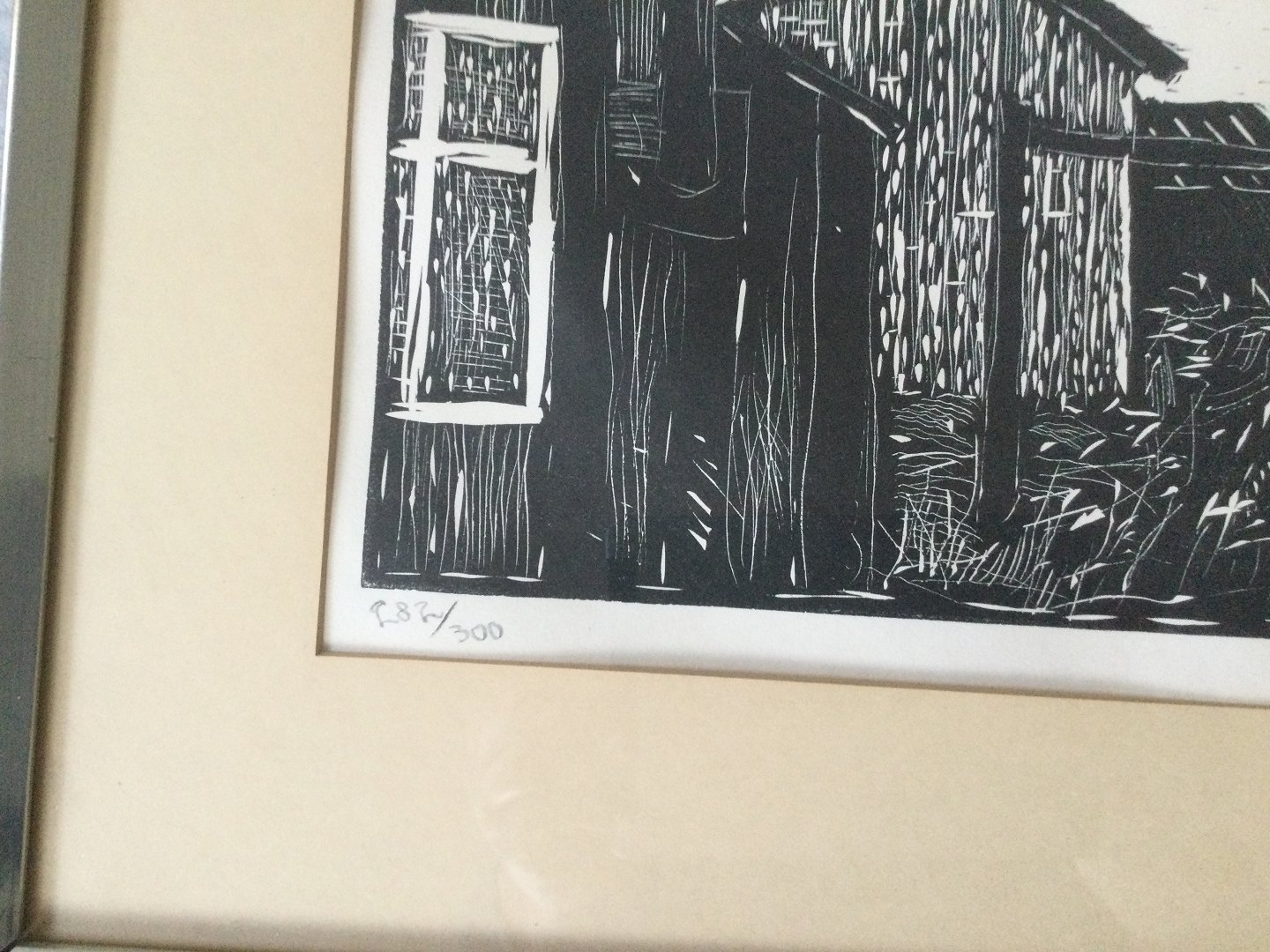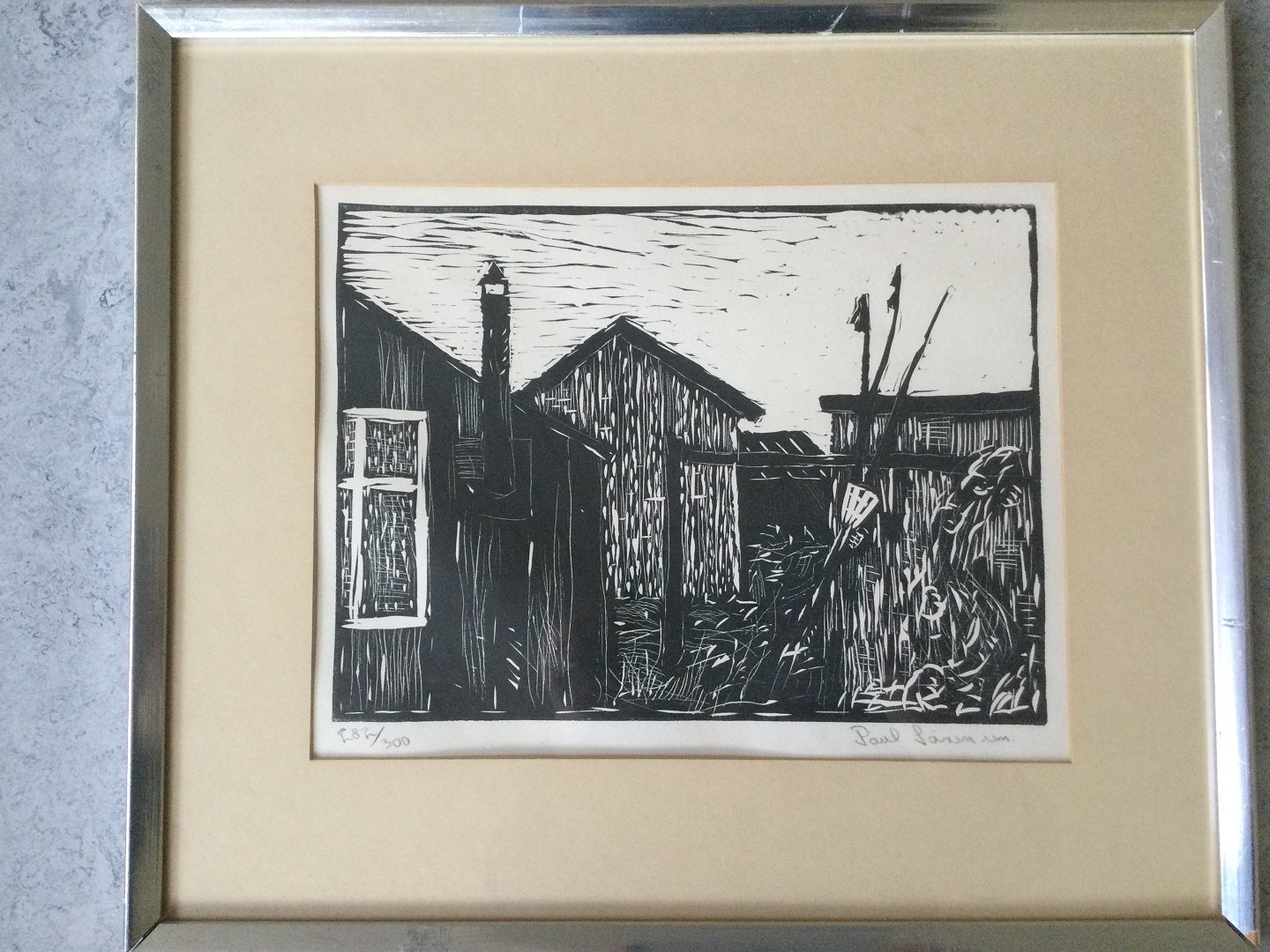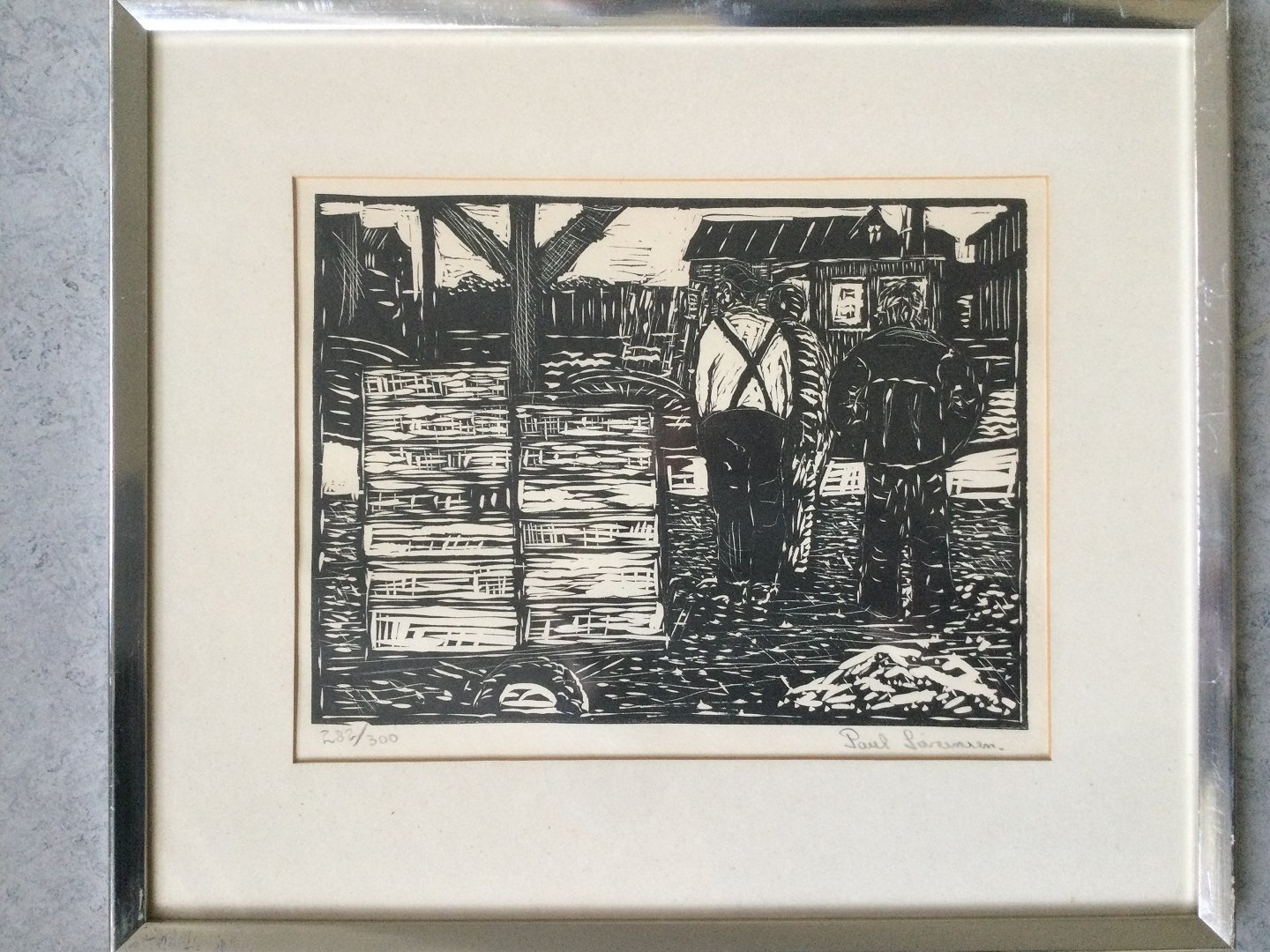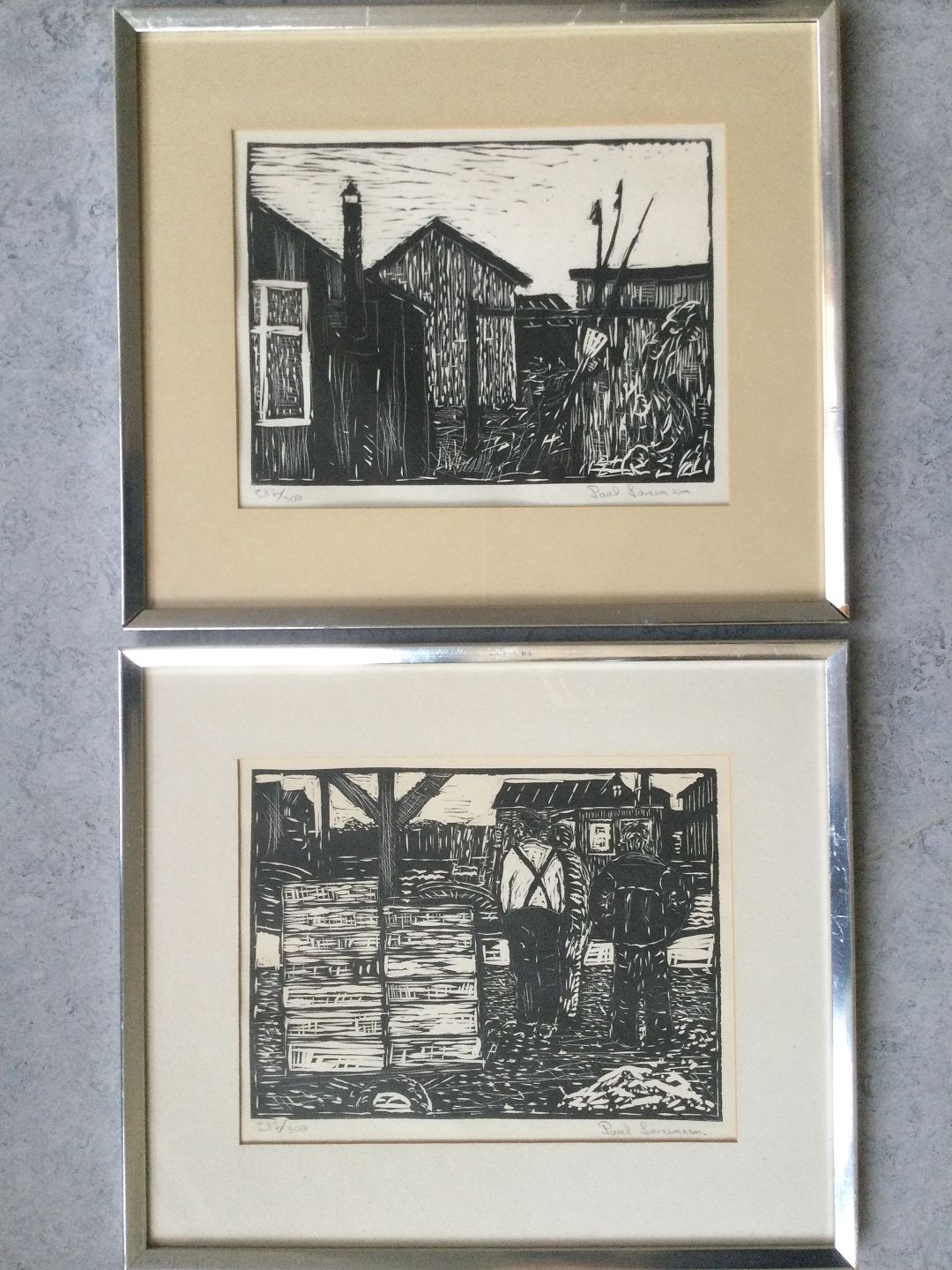 Træsnit af Poul Sørensen - 2 havne motiver.