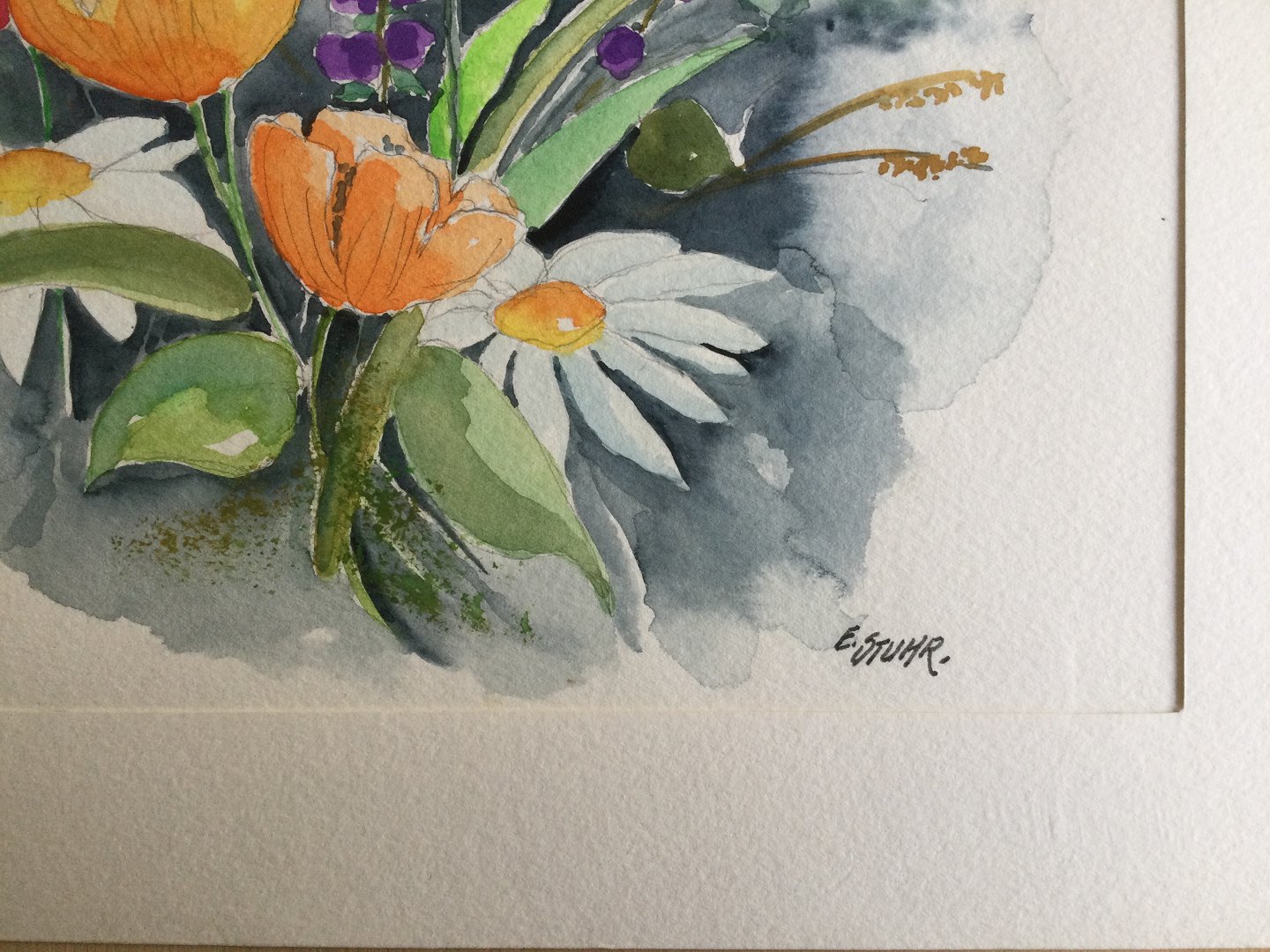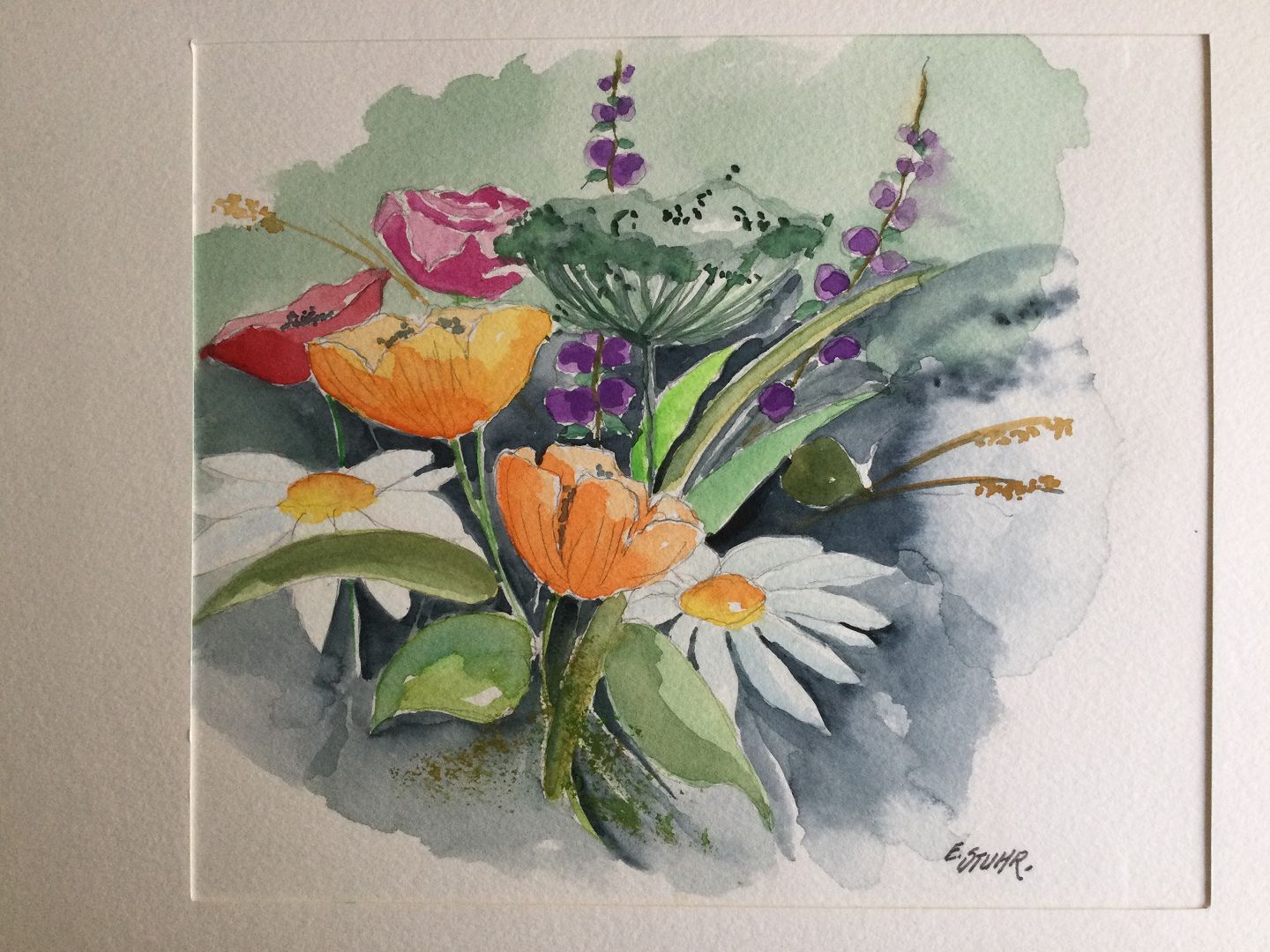 Akvarel af Erik Stuhr - Blomsterbuket.
