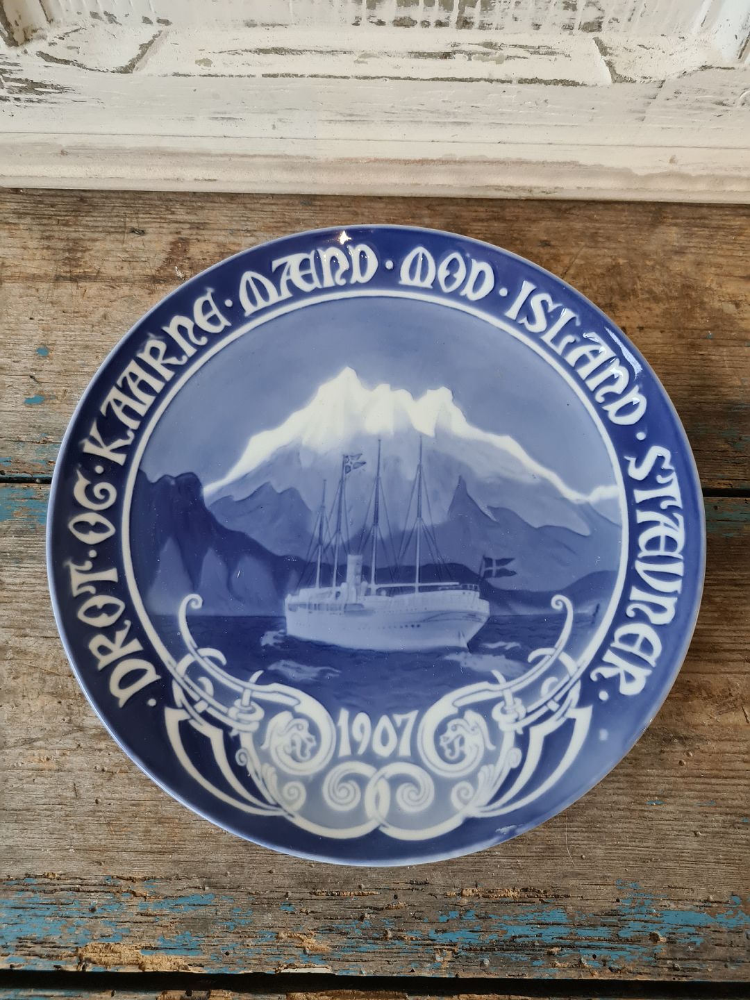 B&G Mindeplatte fra 1907 Kongeskibet Dannebrog ved Island.