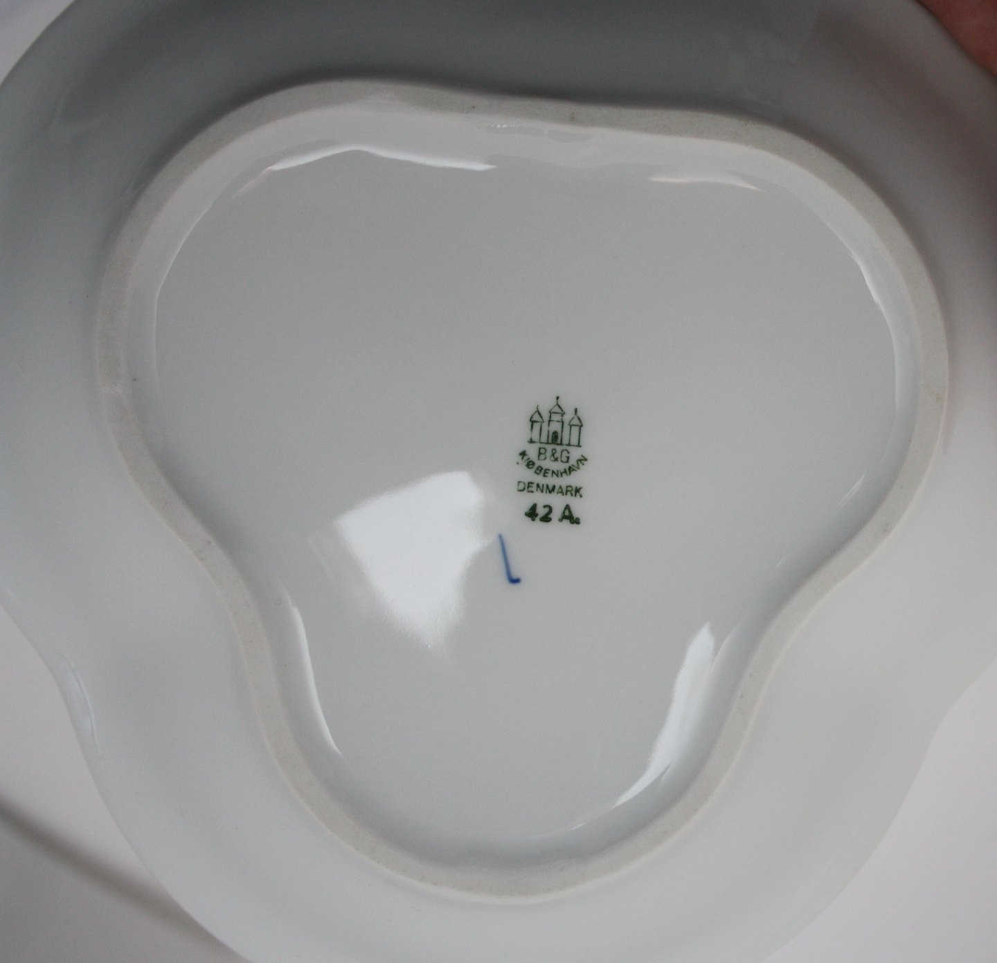 Bing & Grøndahl, Julerose, Kantet bladassiet. Nr. 42A. Højde 3 cm. Længde 20,5 cm. Bredde 19 cm. II. sortering. Pris: 150 kr. stk. Lager: 1