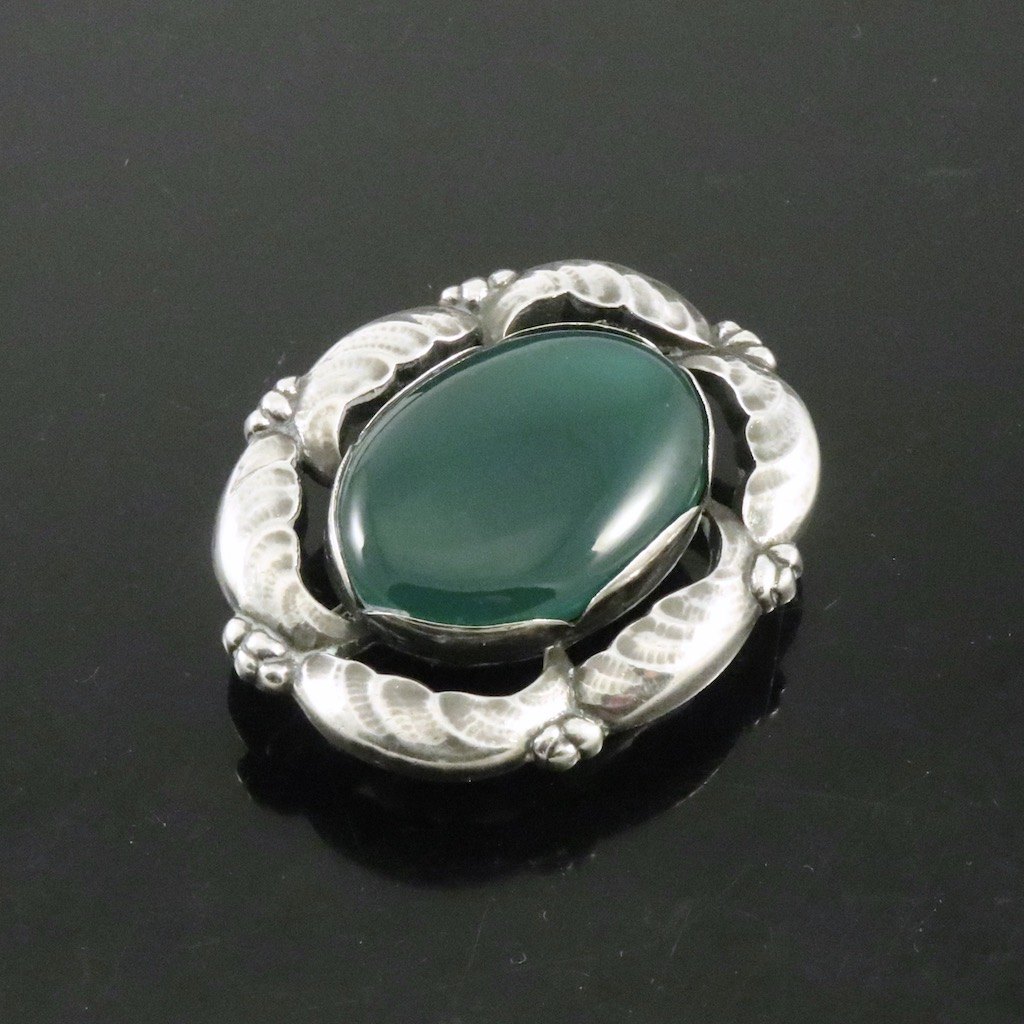 Georg Jensen. Broche i sterlingsølv med grøn agat #130.