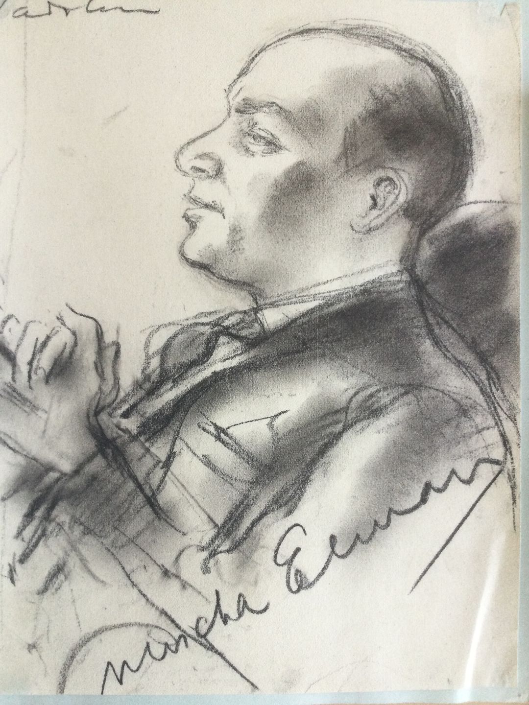 Tegning af Ebbe Sadolin - Portræt af violinisten Mischa Elman (1891-1967).