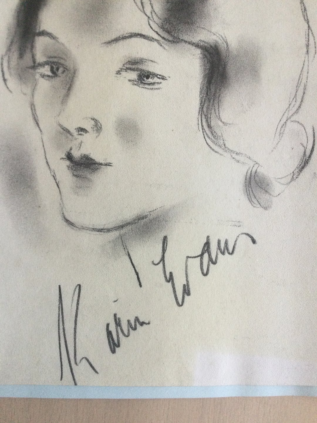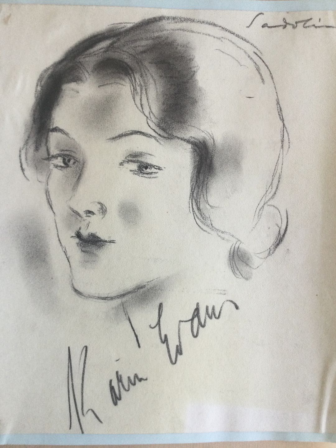 Tegning af Ebbe Sadolin - Portræt af skuespillerinden Karin Evans.