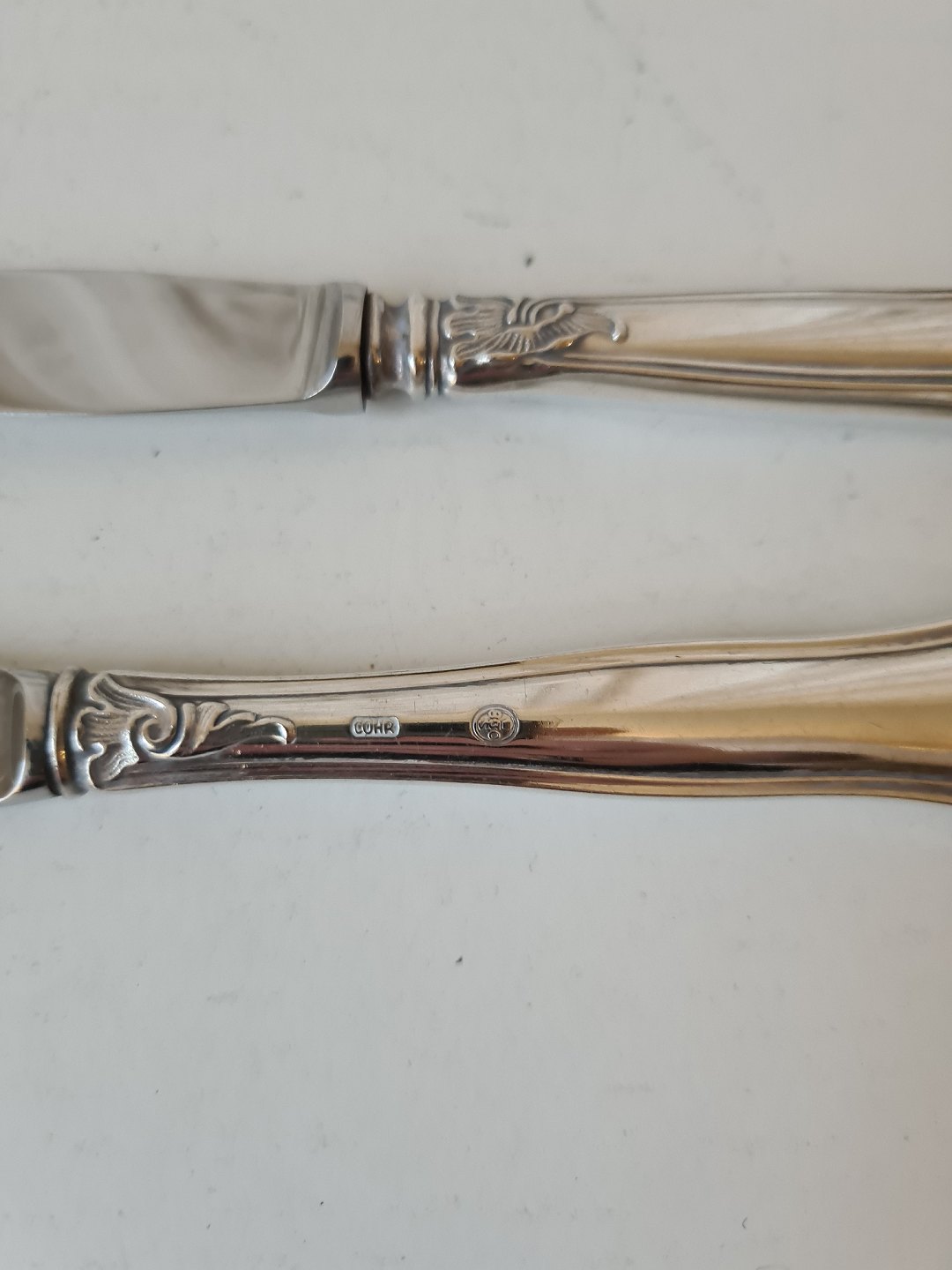Saksisk middagskniv i sølv og stål 21,5 cm.