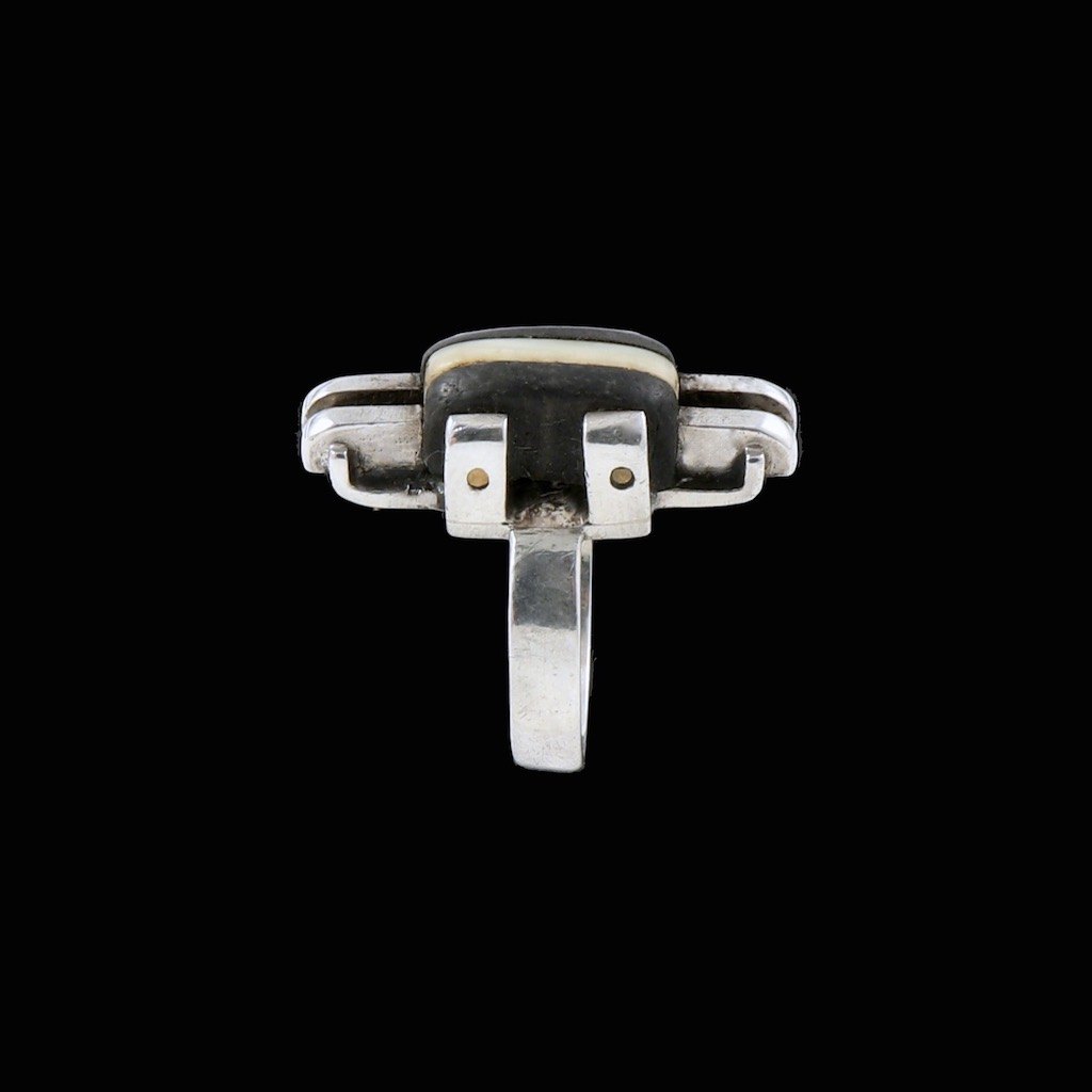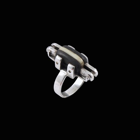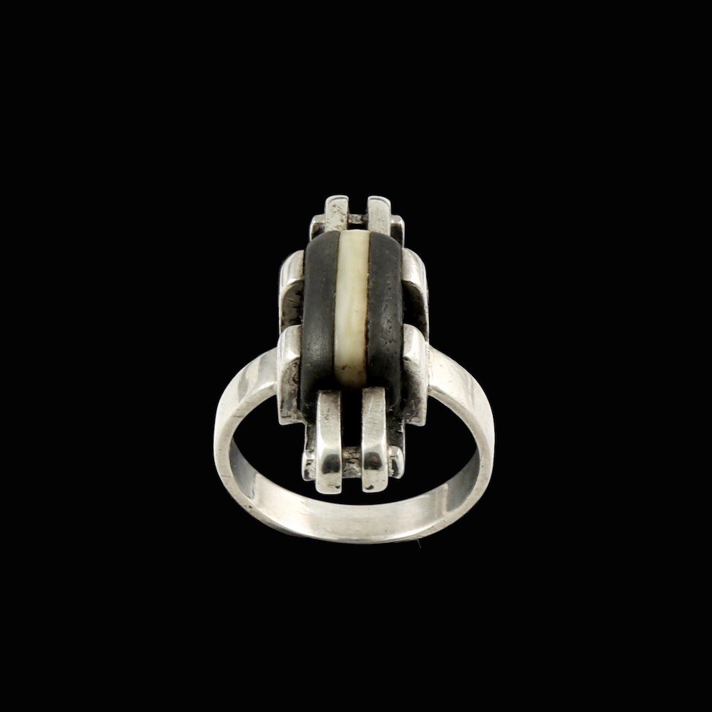 Hans Hansen. Art deco ring i sterlingsølv med ibenholt og elfenben.