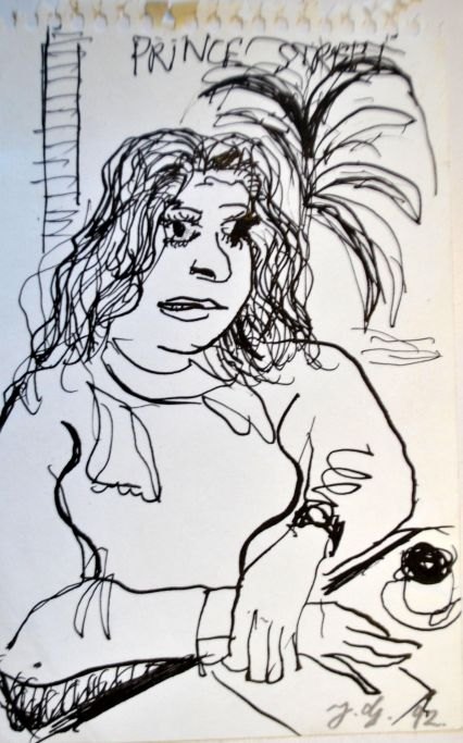 Gislason, Jon (1955 - ) Danmark: En siddende kvinde. Tusch på papir. Signeret: J. G 92. 20 x 12,8 cm.