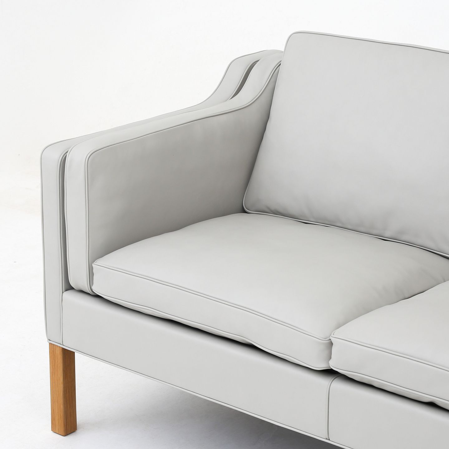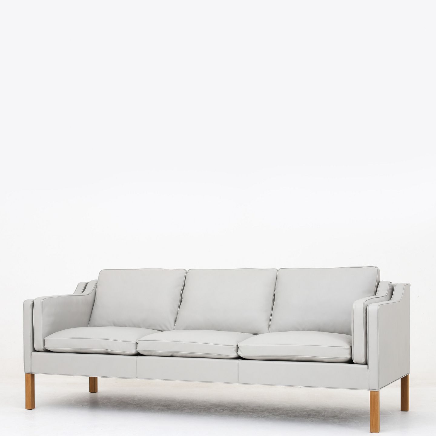 BM 2213 - Nybetrukket 3 pers. sofa i en beskyttet anilin-læder (Shade, farve Light Concrete). KLASSIK tilbyder sofaen i tekstil og læder efter eget valg. Kontakt os venligst for mere information.