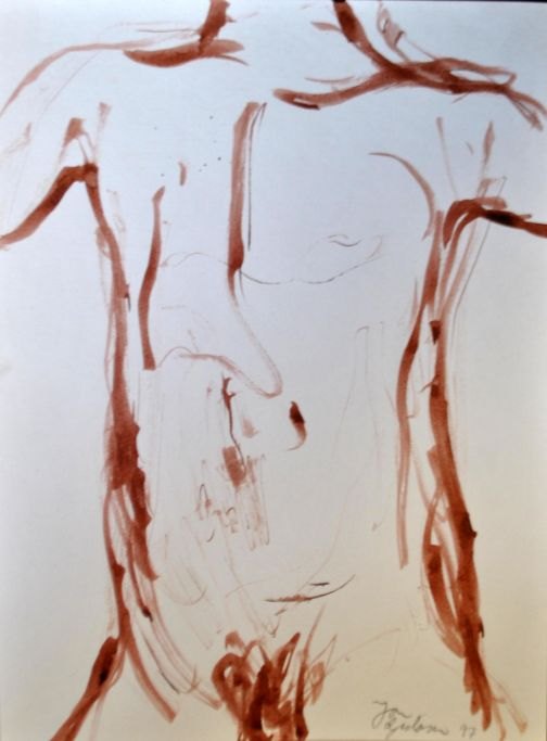 Gislason, Jon (1955 - ) Danmark: En nøgen mande krop. Tusch på papir. Signeret 97. 32 x 23,5 cm.