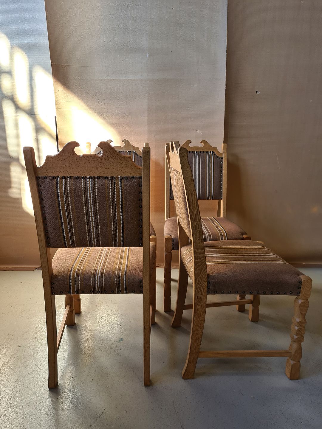 4 Stole i massivt egetræ fra 1980erne.