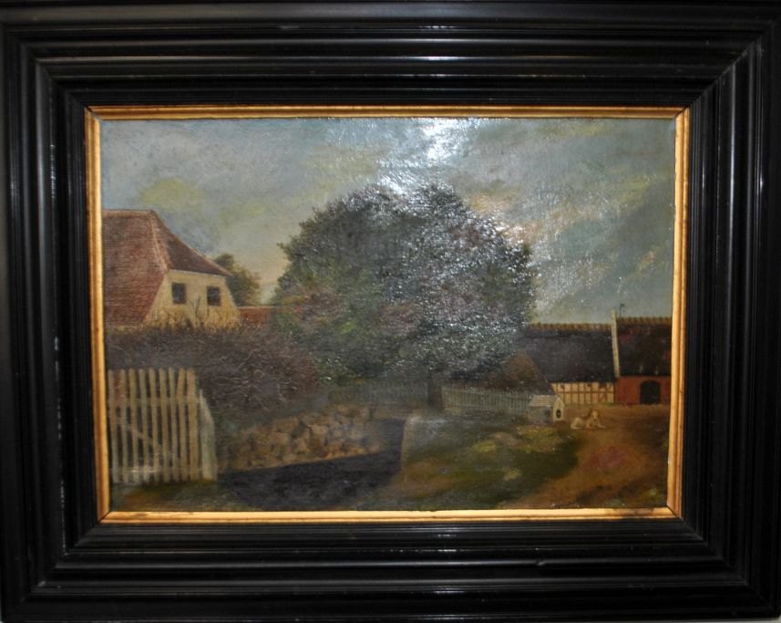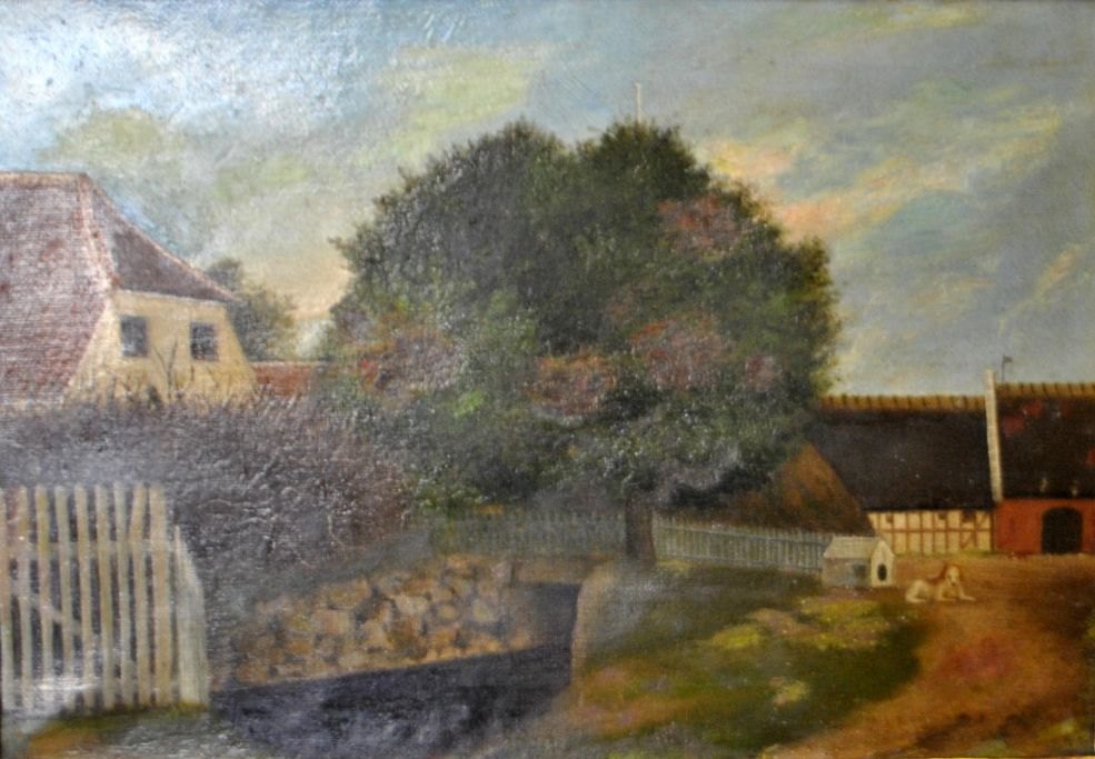 Naivistisk maleri. Efter traditionen skulle motivet være være fra en stor gård i nærheden af Nibe.