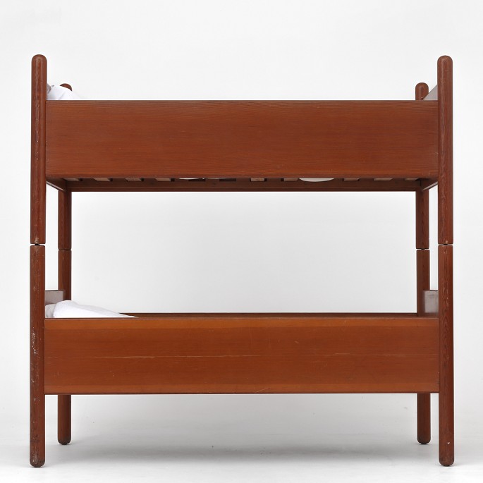 Barneseng/køjeseng i massiv, patineret Oregon pine fra 1935.