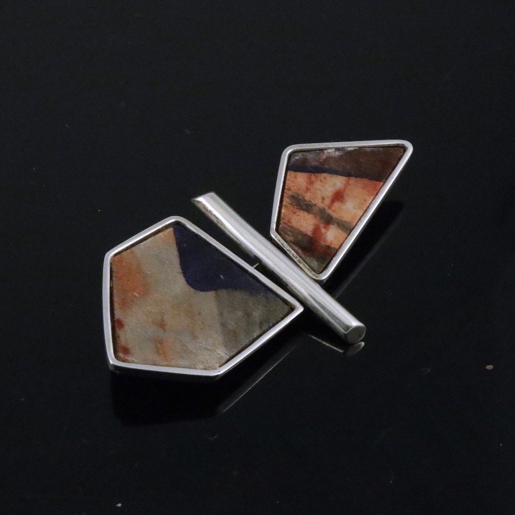 Leon Kastbjerg Nielsen / Hanne Foss Brink. Broche i sterlingsølv med tekstilkunst.