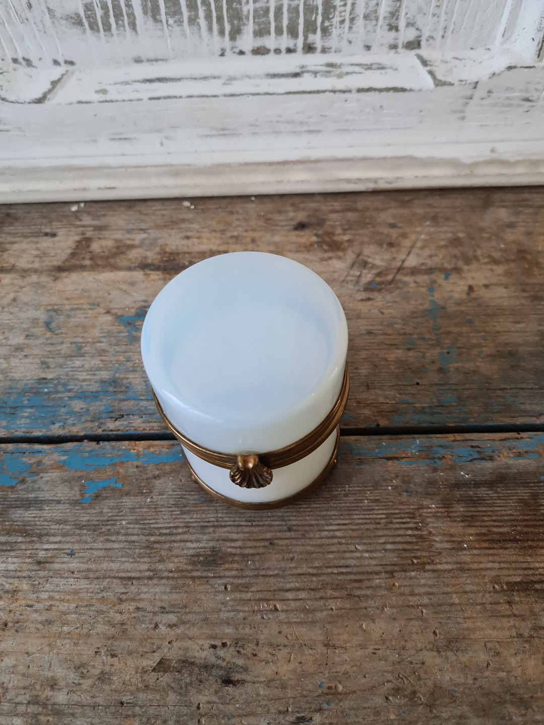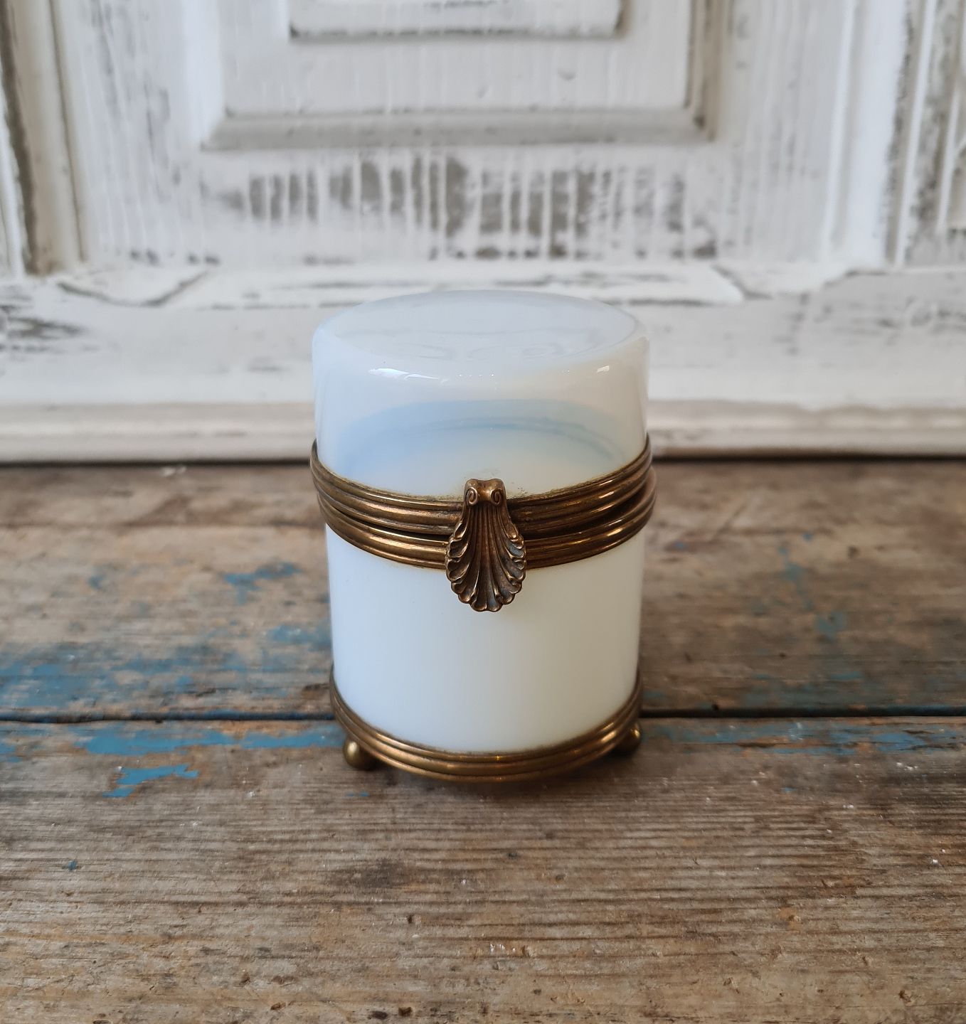 1800tals skrin i hvidt opalineglas med forgyldt montering