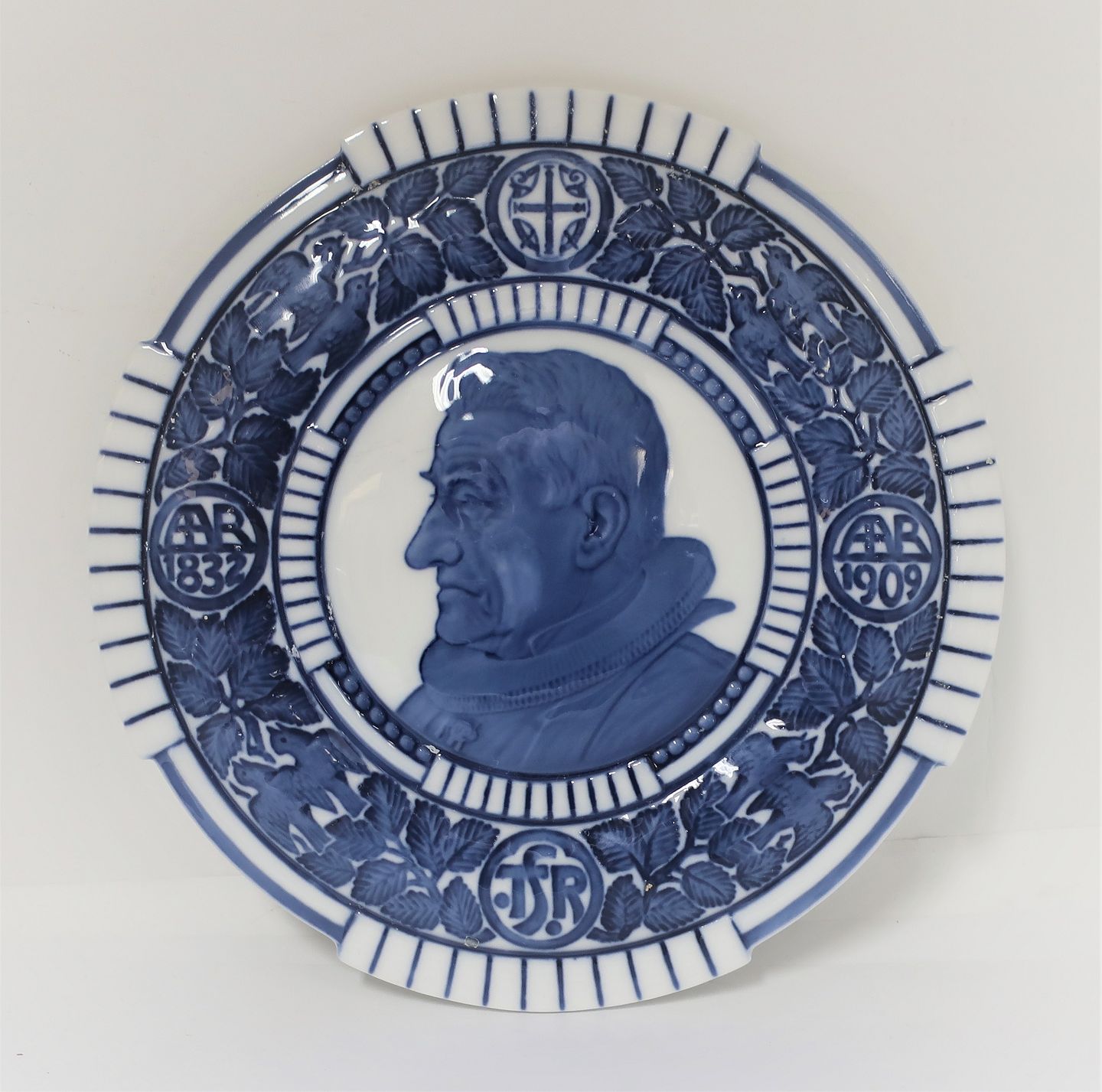 Royal Copenhagen. Mindeplatte #114. Platte for biskop Thomas Skat Rørdam. Diameter 20 cm. Produceret 1926. Der er 205 styk produceret.
