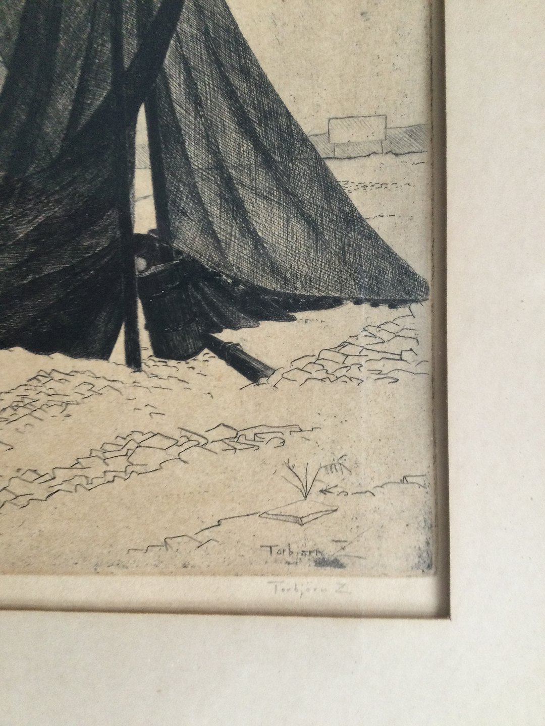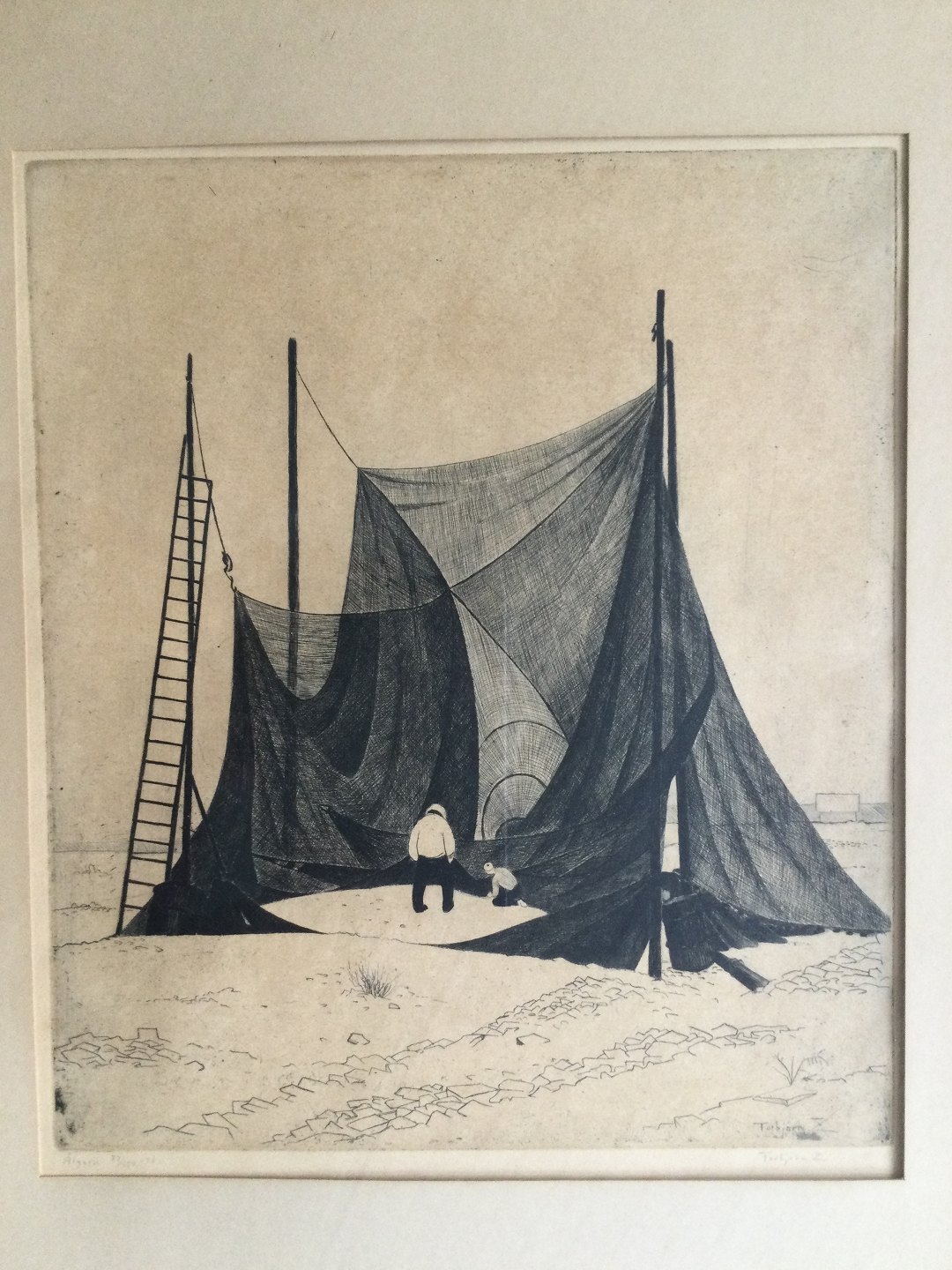 Træsnit af Torbjörn Zetterholm - Ålegarn 1951.