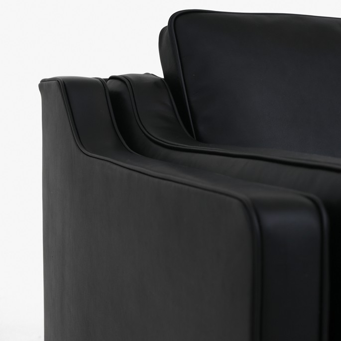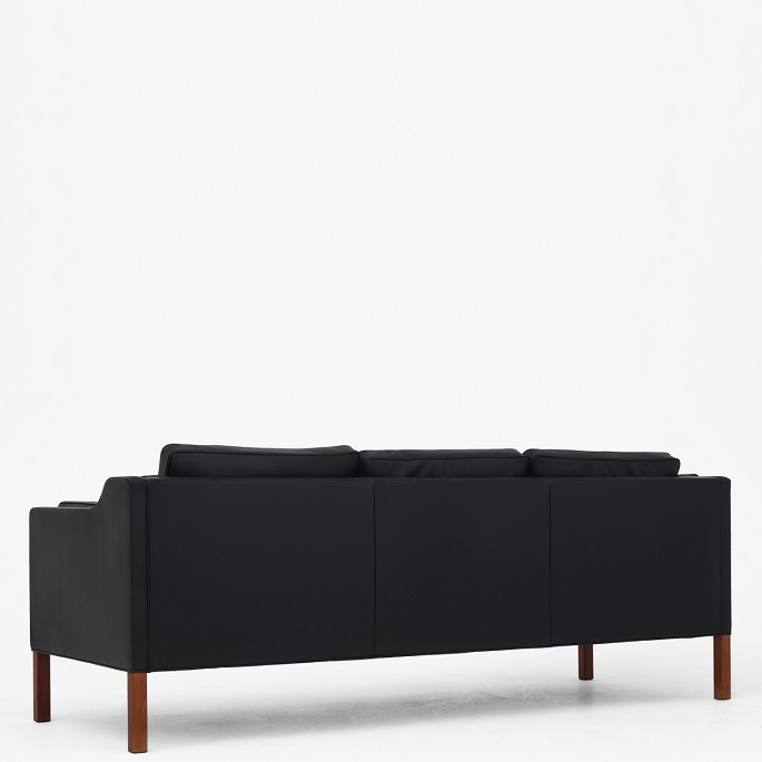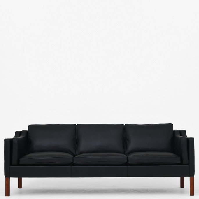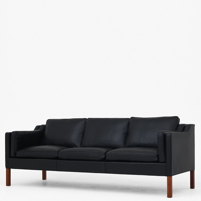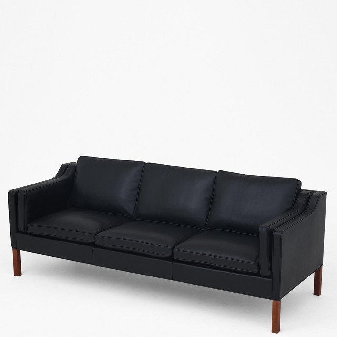BM 2213 - Nybetrukket 3 pers. sofa i Elegance sort anilin-læder med ben i teak