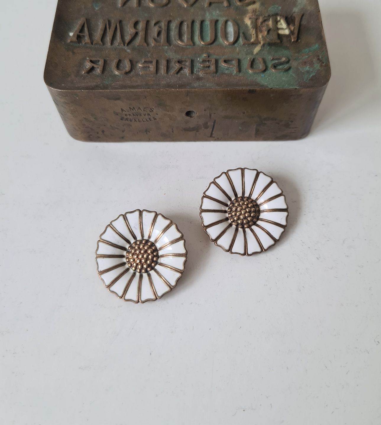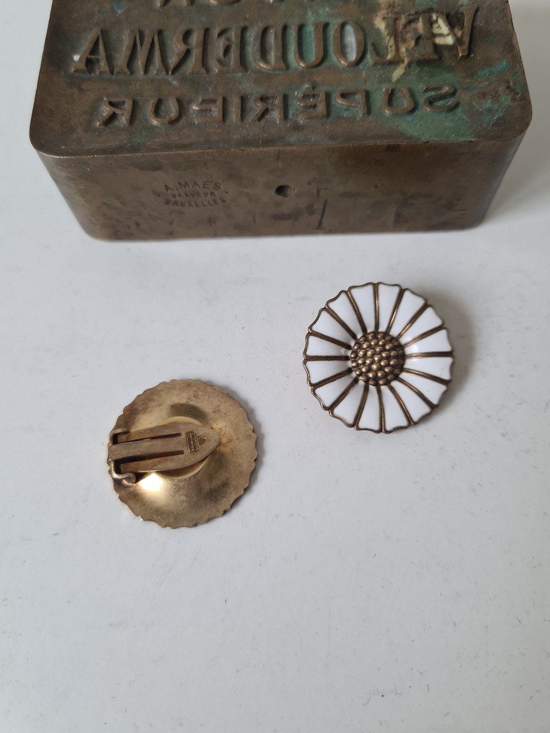 Anton Michelsen Margueritte - Daisy øreklips i forgyldt sterlingsølv og hvid emalje