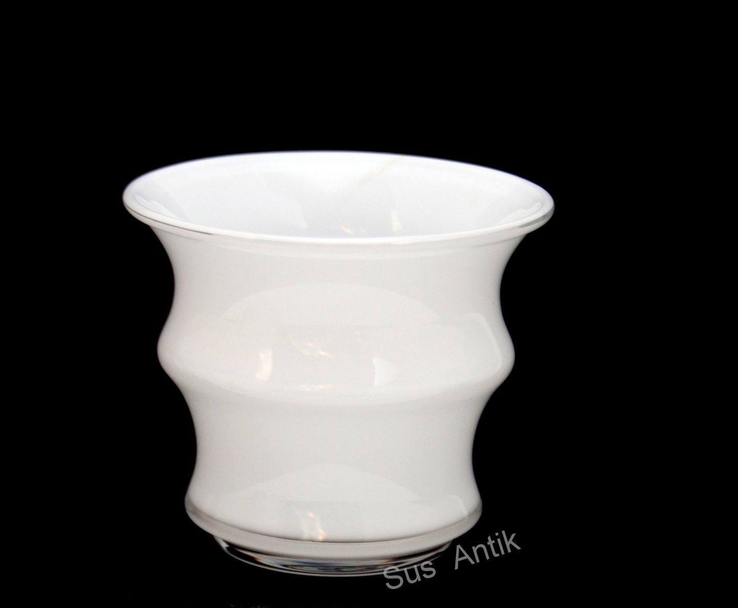 Holmegaard, Karen Blixen, hvid opaline fyrfadsstage kan også bruges som mini urtepotteskjuler. Designet af Anja Kjær i 2000. Formen er inspireret af afrikanske kvinders hals og armringe. Sigeret Anja Kjær Holmegaard. Højde ca. 7 cm. Diameter ca. 8,5 cm. Pris: 200 kr. stk. Lager: 1