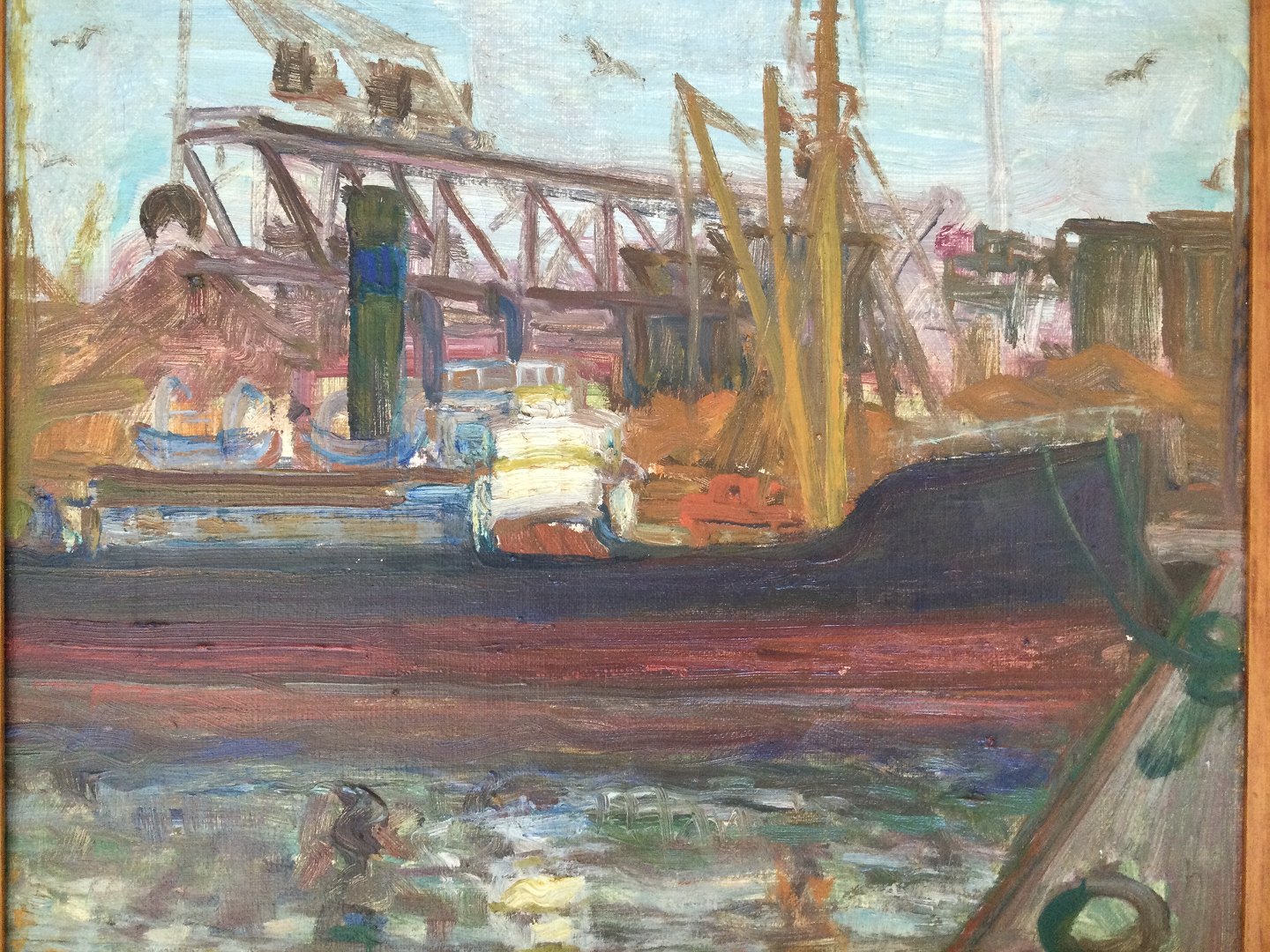 Maleri af Leo Thellefsen - Havneparti, Esbjerg 1953..