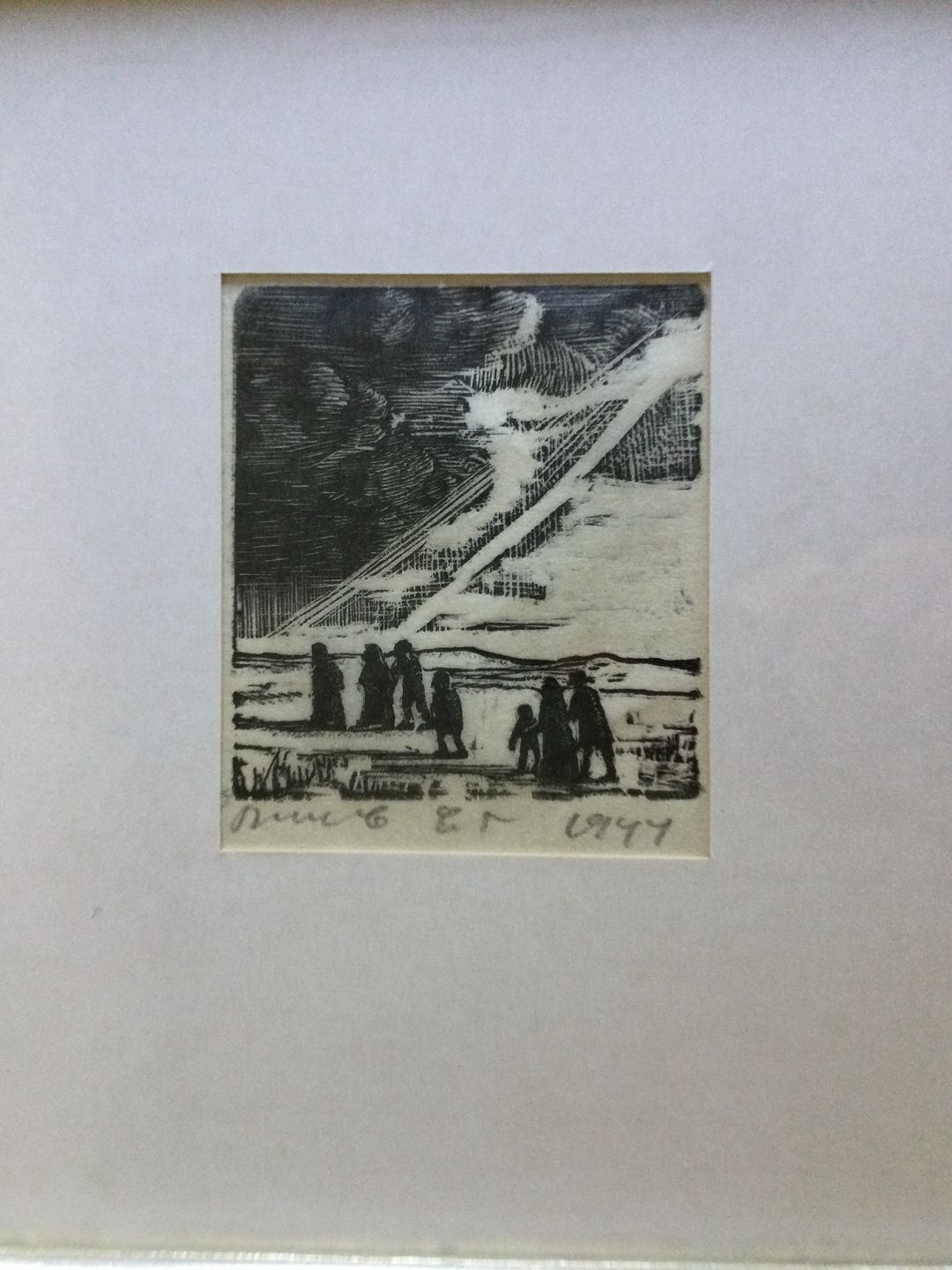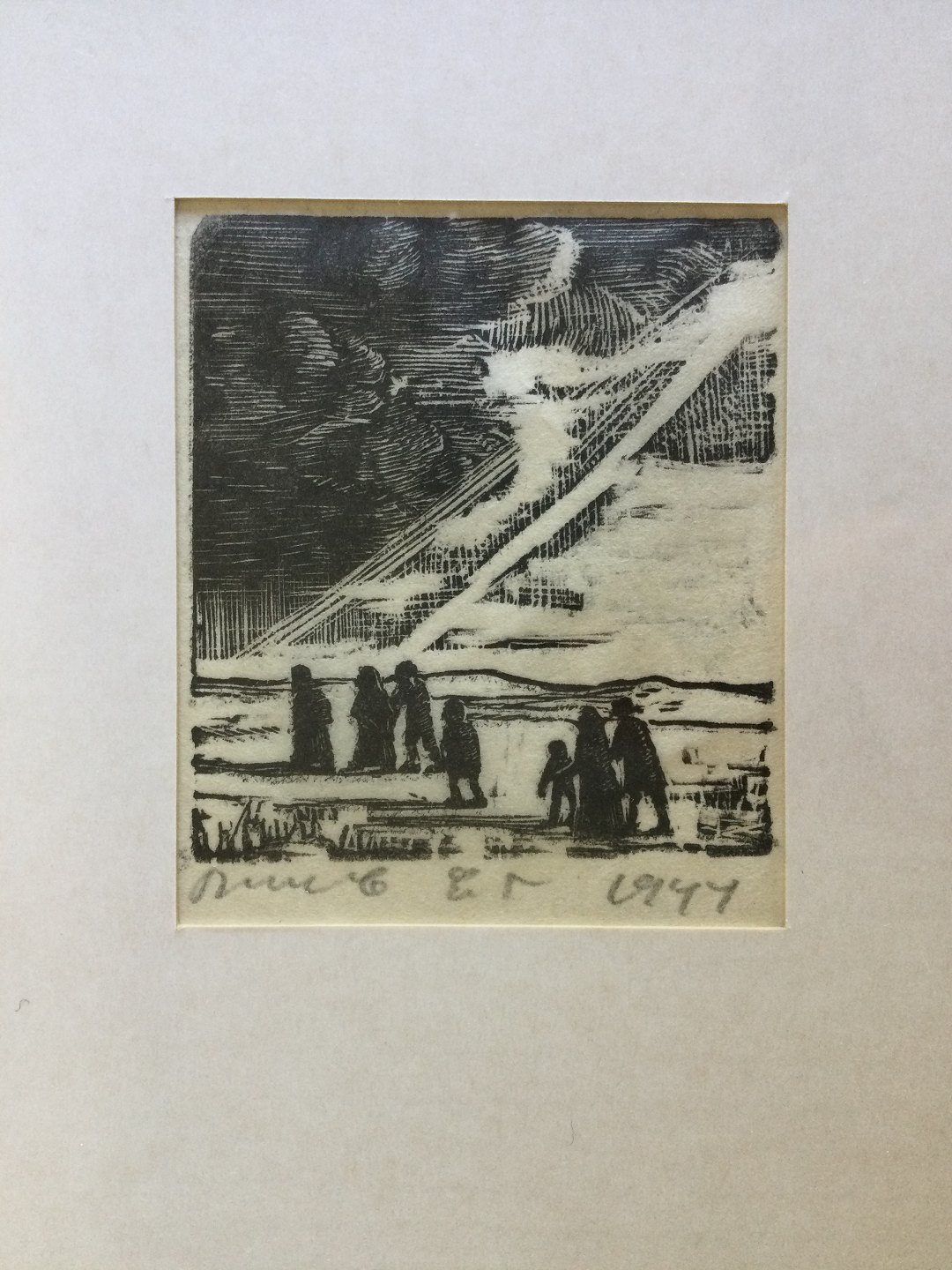Træsnit af Povl Christensen 1944 - Folk på vej