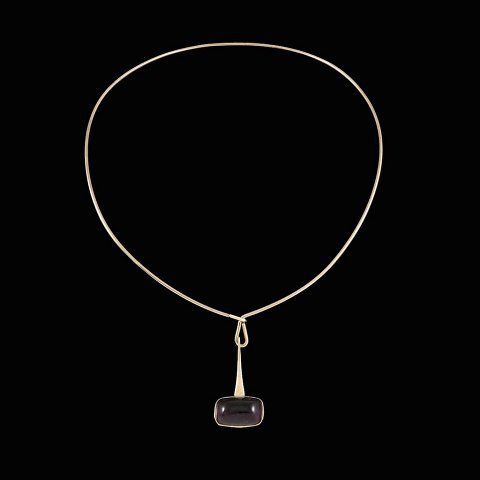 Arne Johansen. Halsring i 14k guld med ametyst-vedhæng.