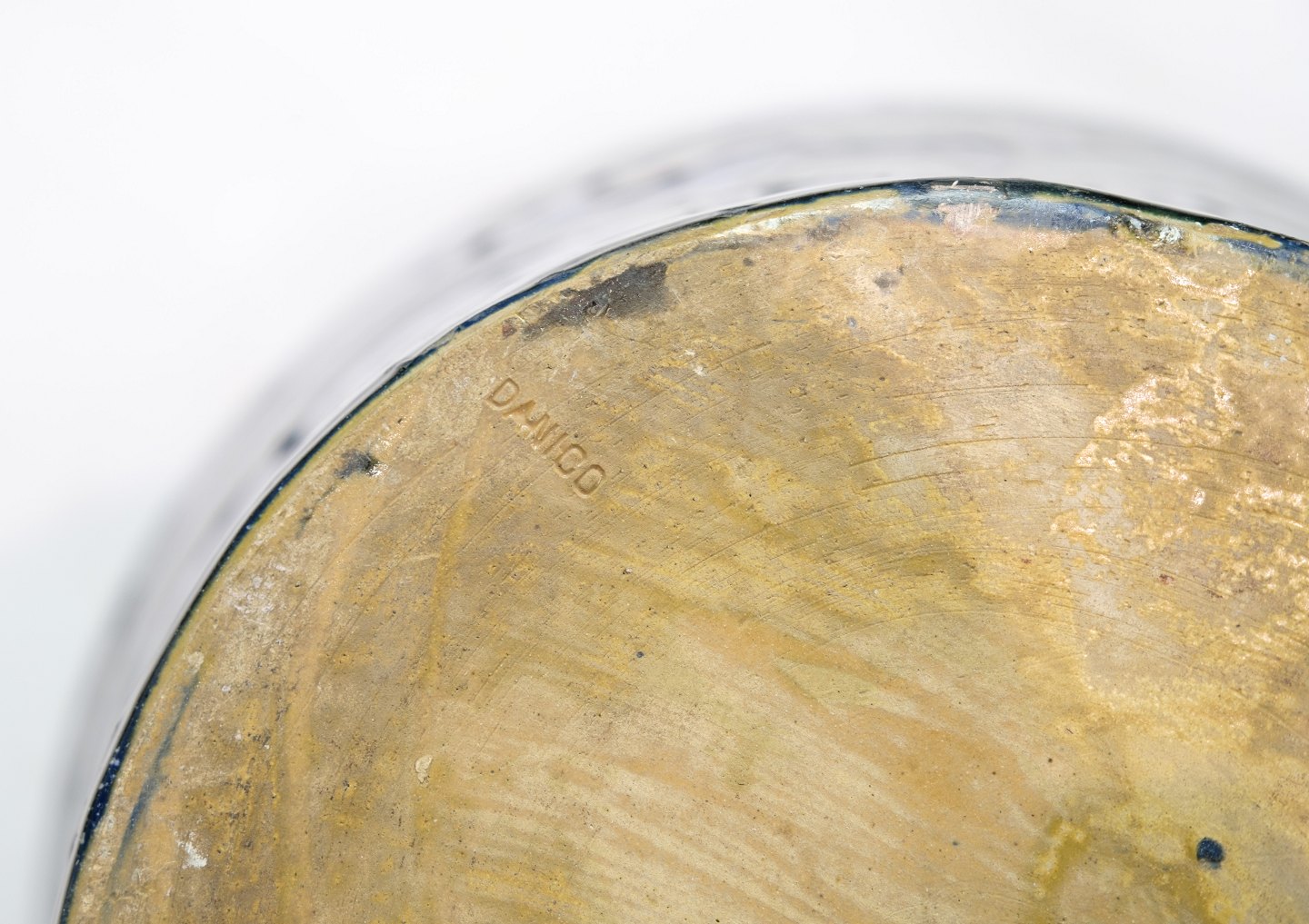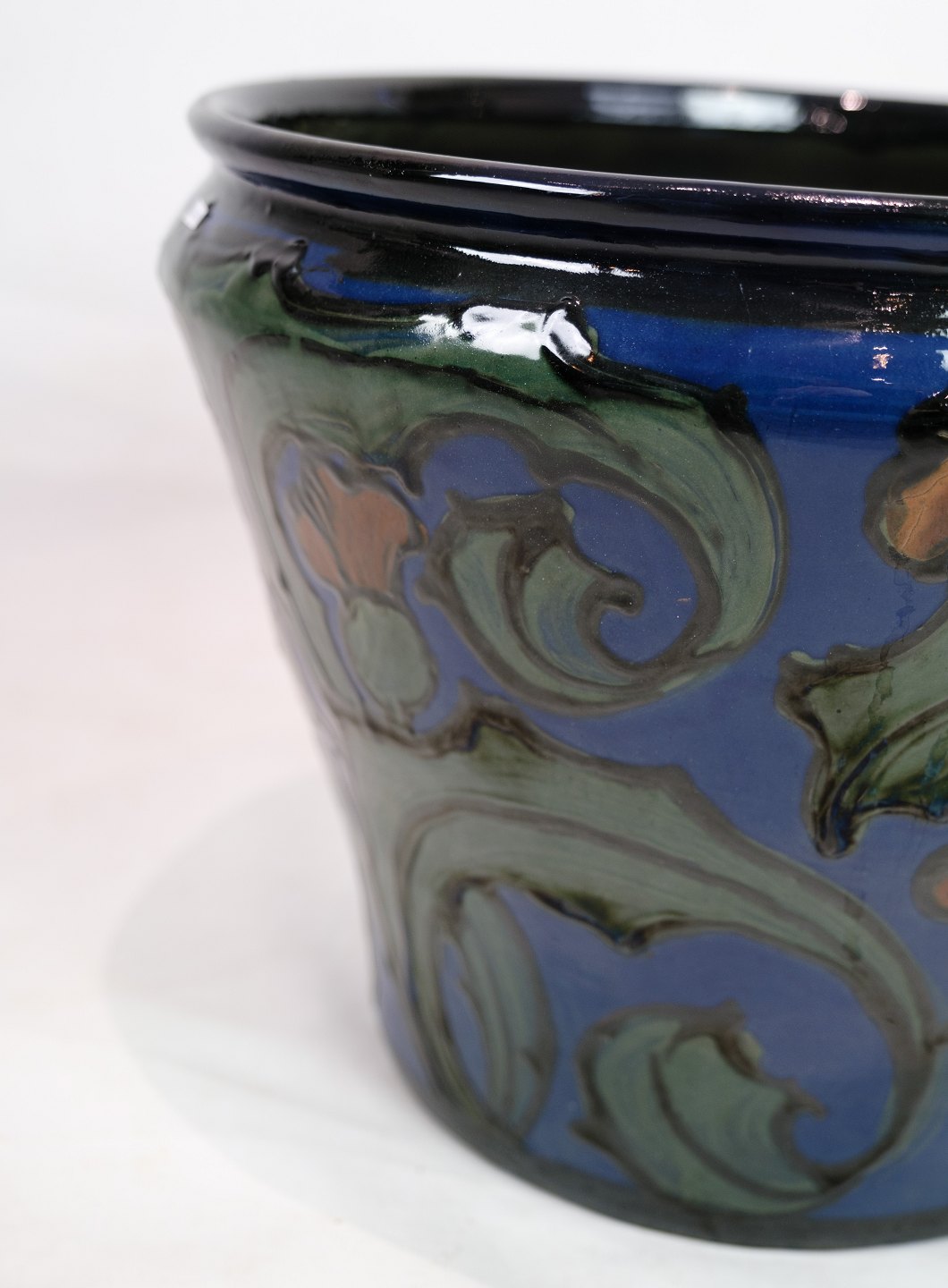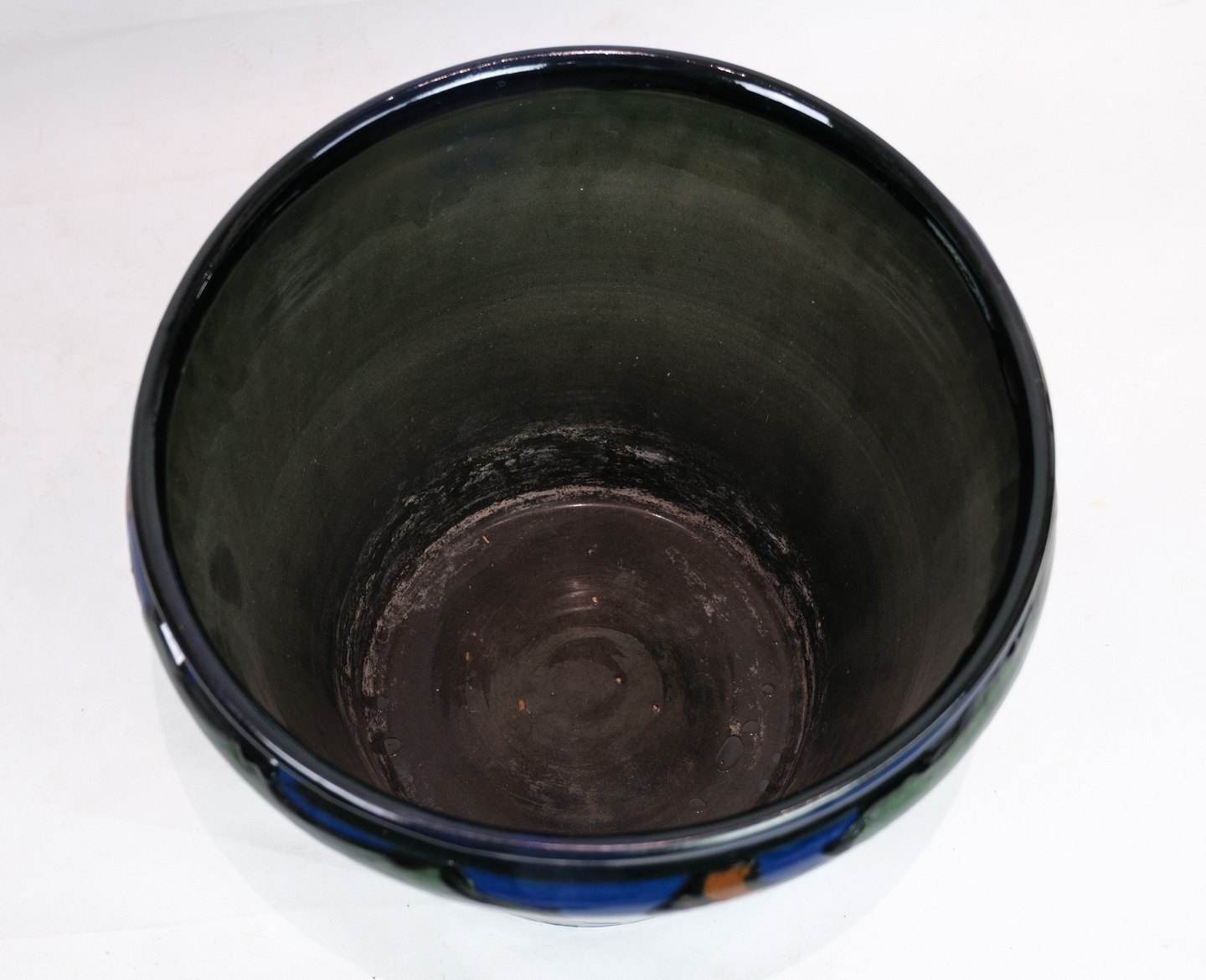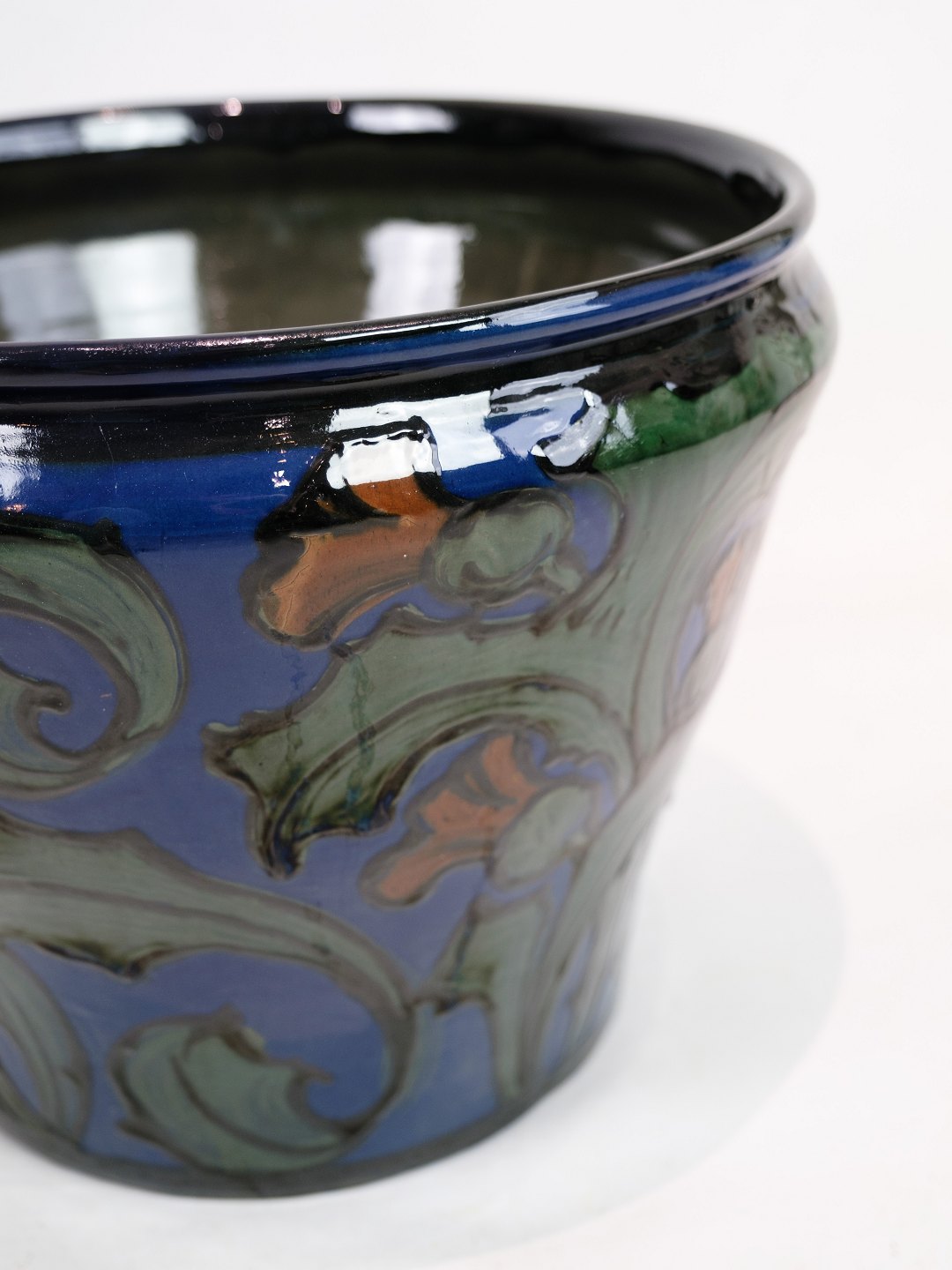 Stor blomster kumme i Danico keramik med blå og grønlige farver fra omkring 1960'erne.