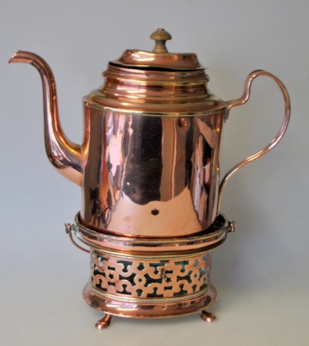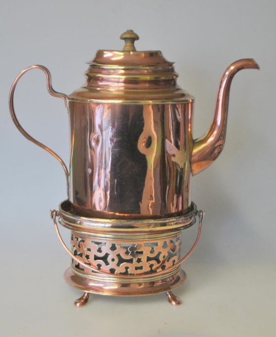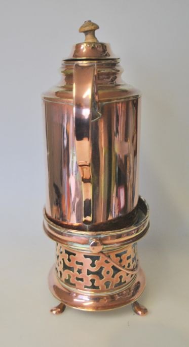 Dansk kobber kaffekande med fyrfad, 19. årh.