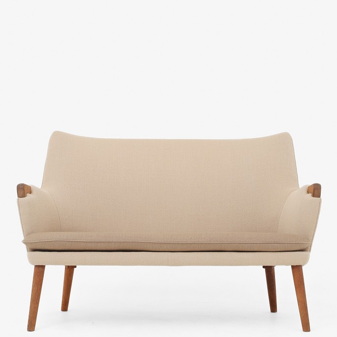 AP 20S - Sofa i eg og nyt tekstil i Vidar 3 (farve 323 og hynde i farve 333).