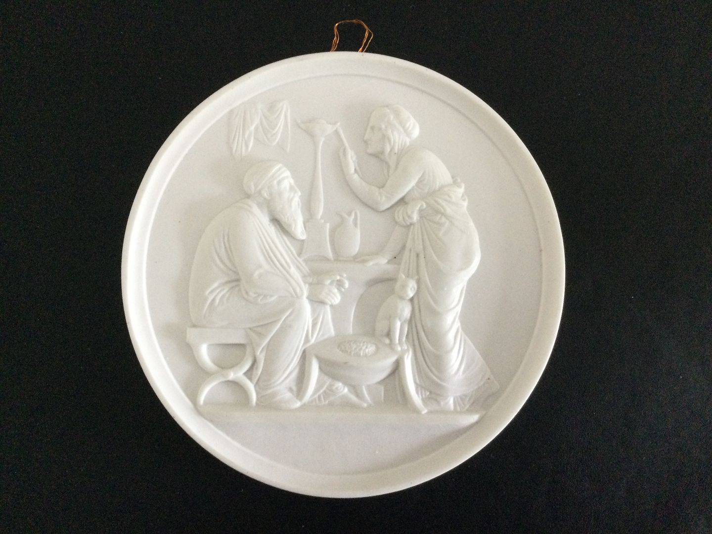 Bisquit plakette med Bertel Thorvaldsen motiv fra B&G.
