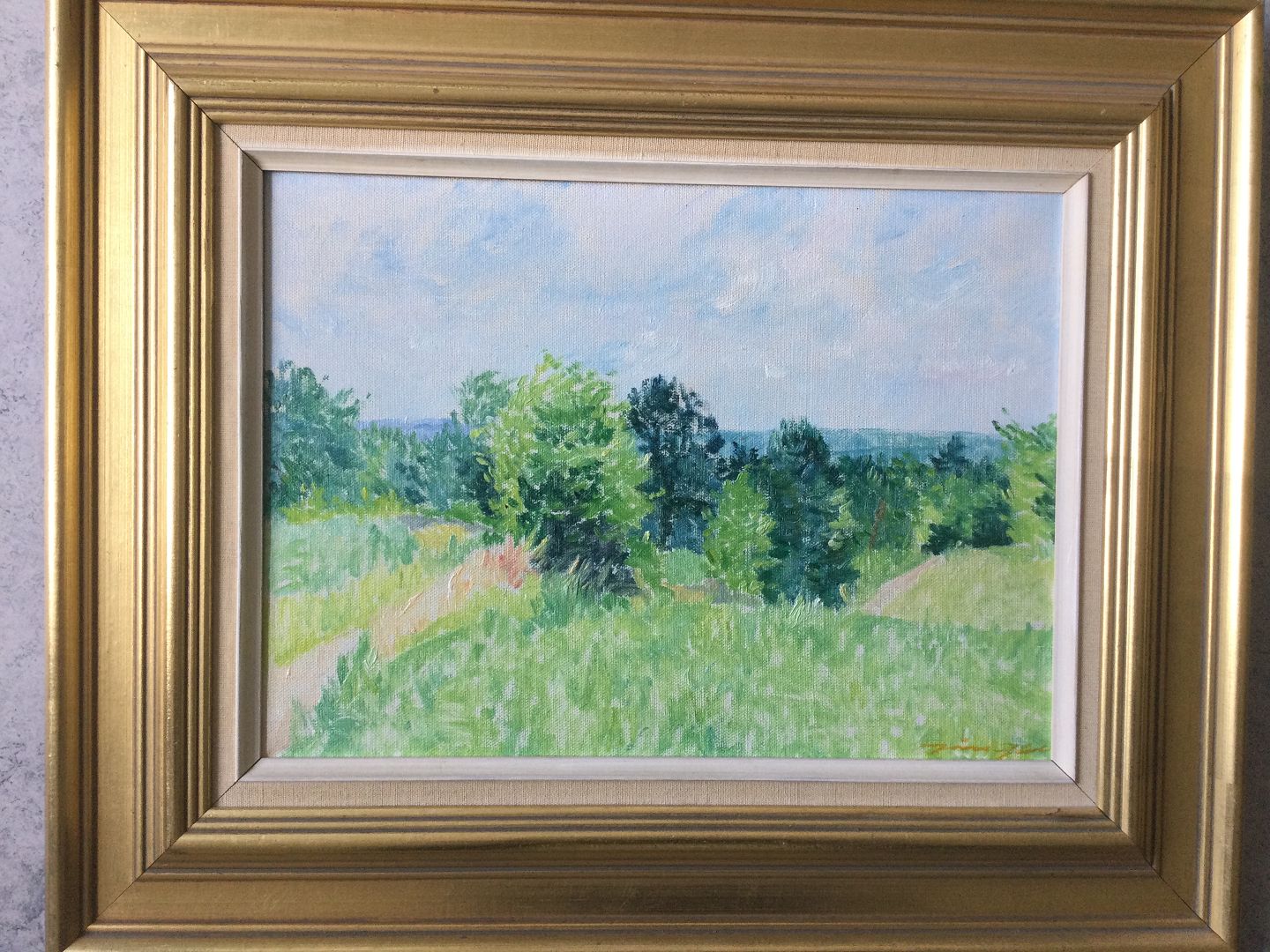 Maleri af Jørn Glob - Lysegrønt landskab.
