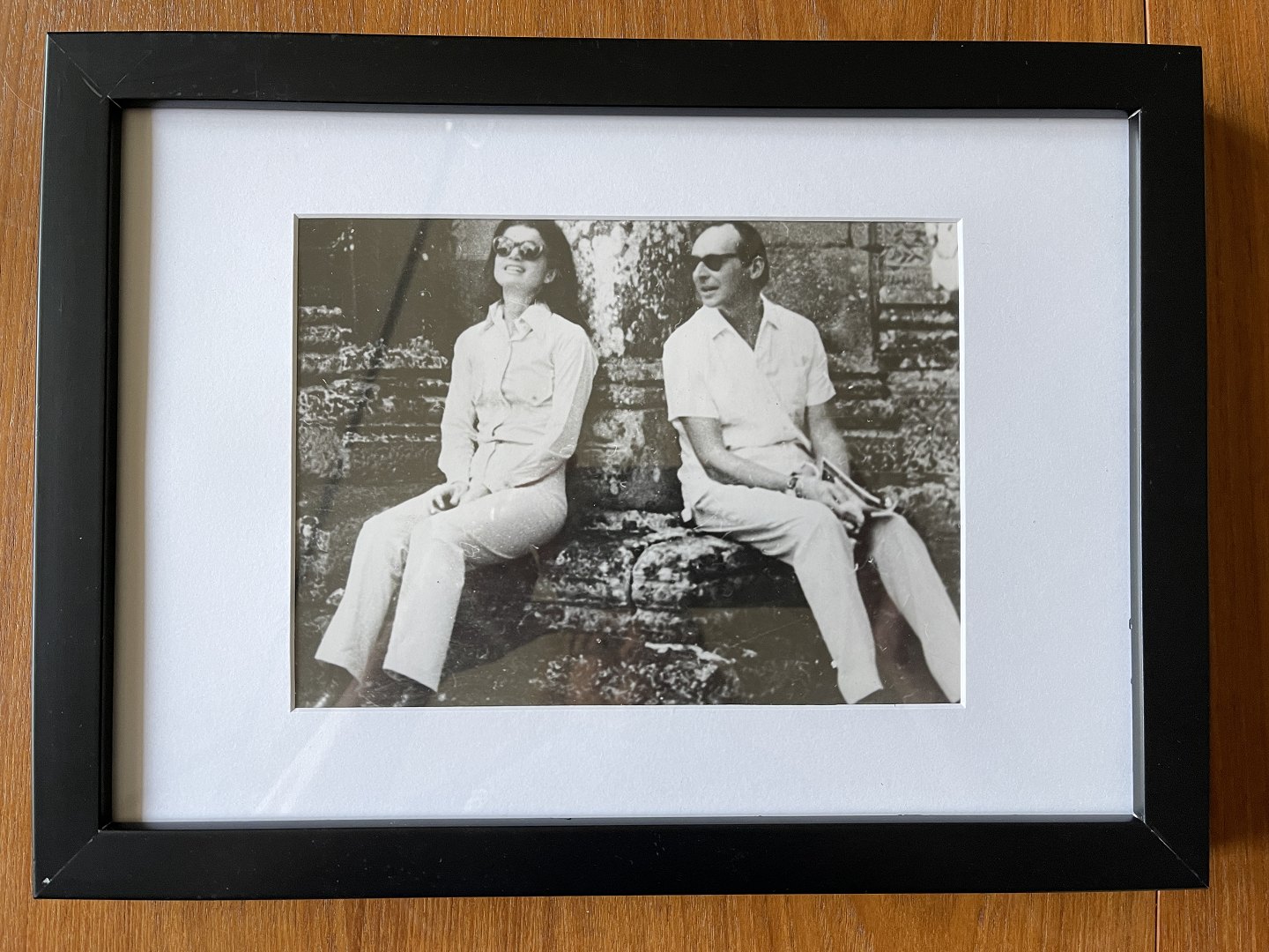 Originalt sort-hvidt foto af Jackie Kennedy og Lord Harlech i Cambodia i i 1967. Lord Harlech var rådgiver for Jackie Kennedys afdøde mand, præsident John F. Kennedy, under Cubakrisen i 1962.