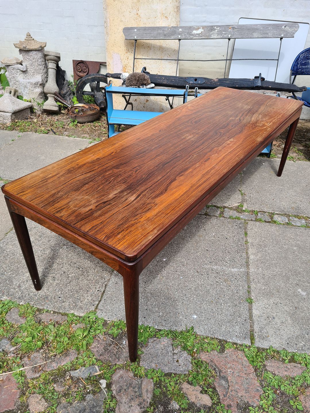 Dansk Design Sofabord fra 1960´erne i palisanderfinér . Fremstår godt og stabilt med en smule afblegning på bordpladen hvor en lille olieklud ville gøre sig.