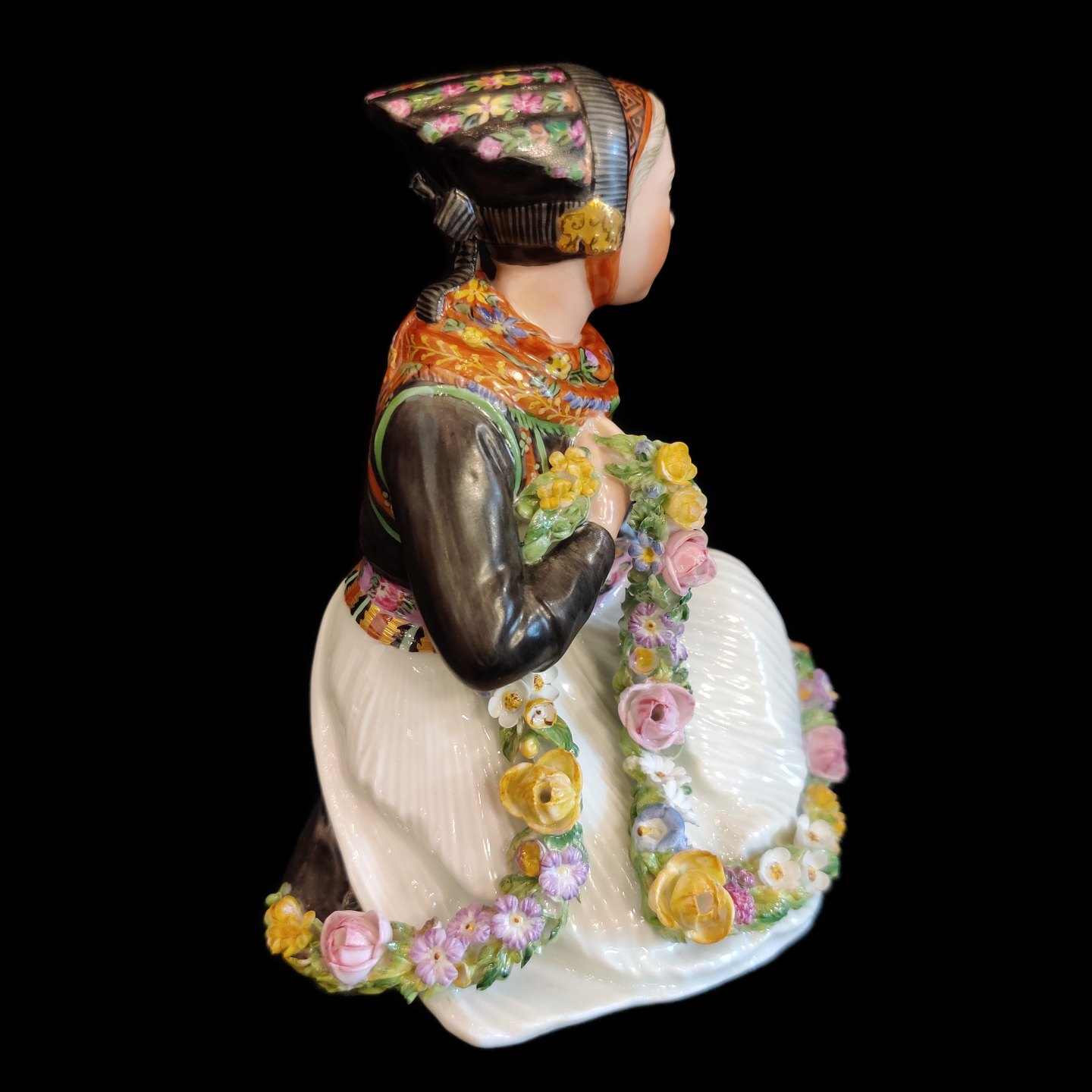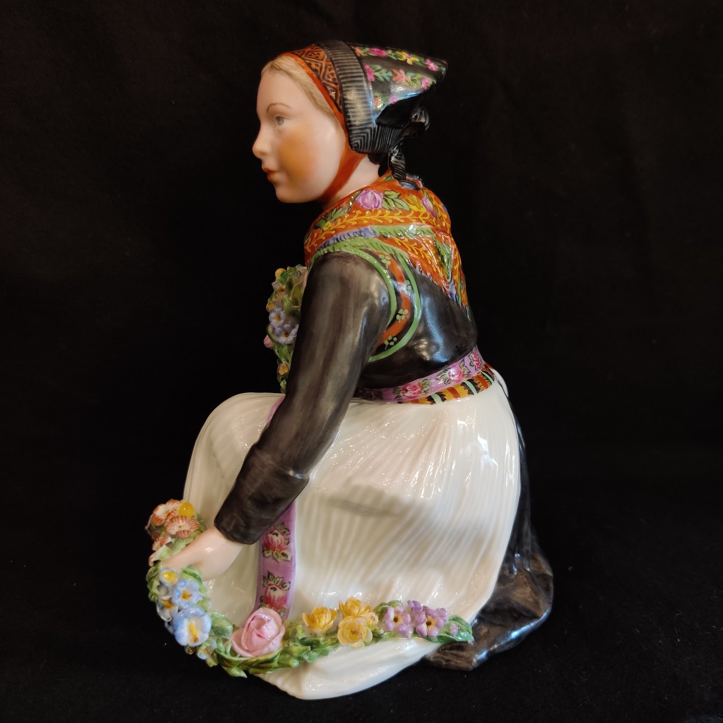 Carl Martin Hansen for Royal Copenhagen; Porcelæns figur af Amager pige #12412. 1. sortering. Overglasurfigur.