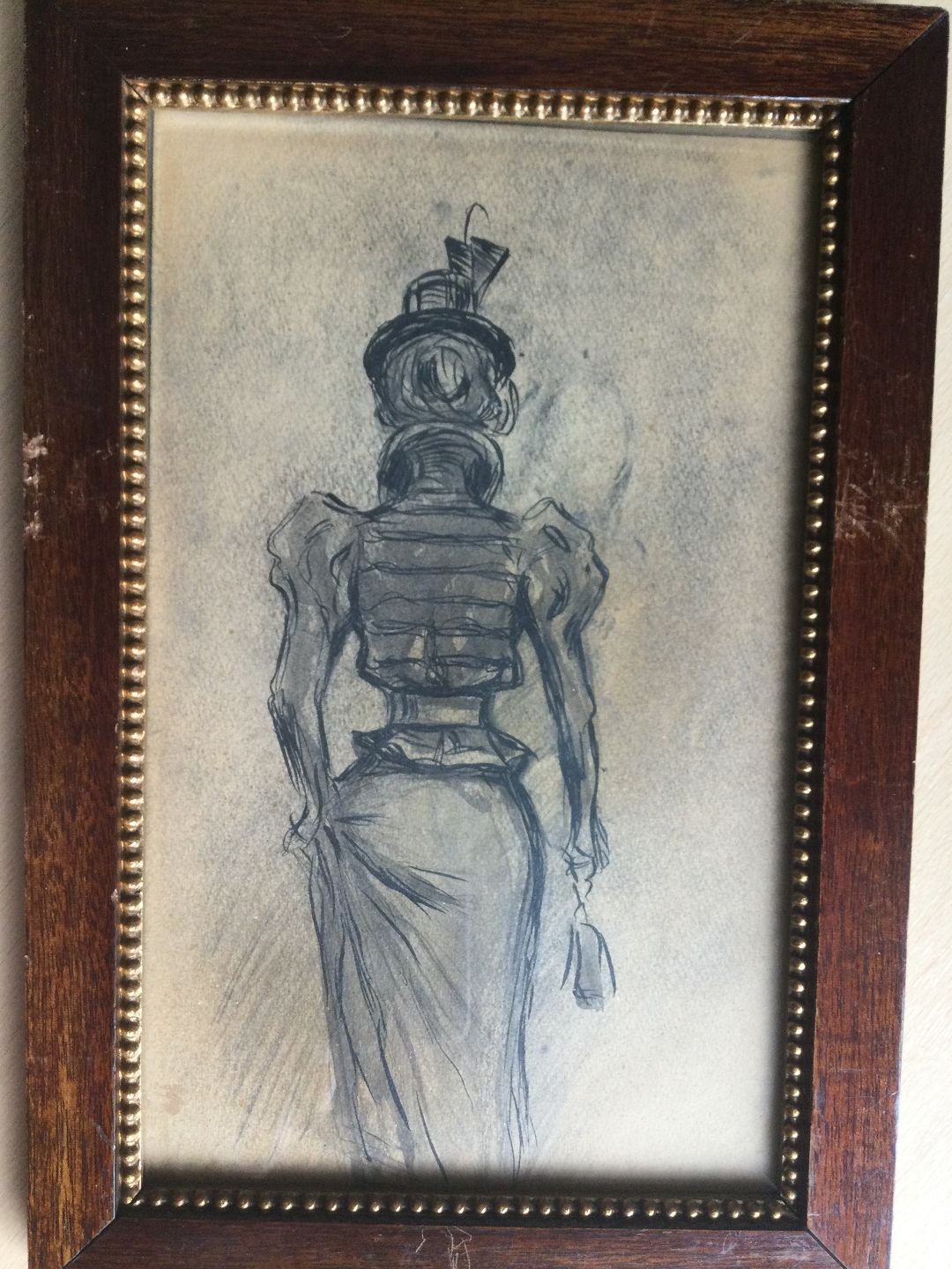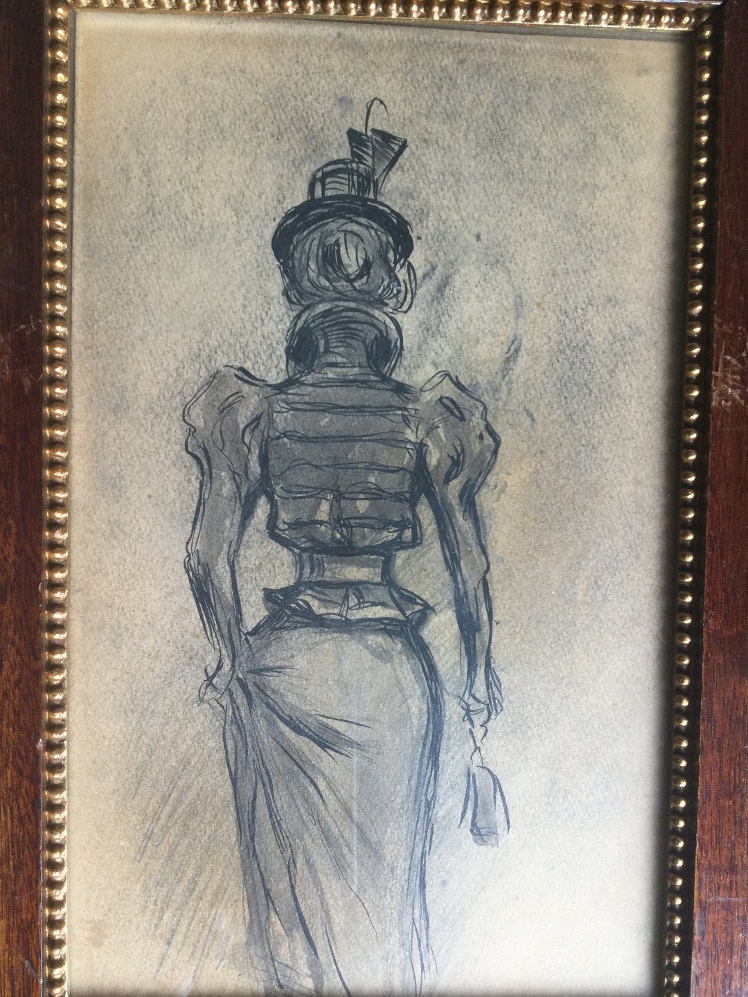 Tegning af Eigil Petersen - Fornem dame set bagfra.