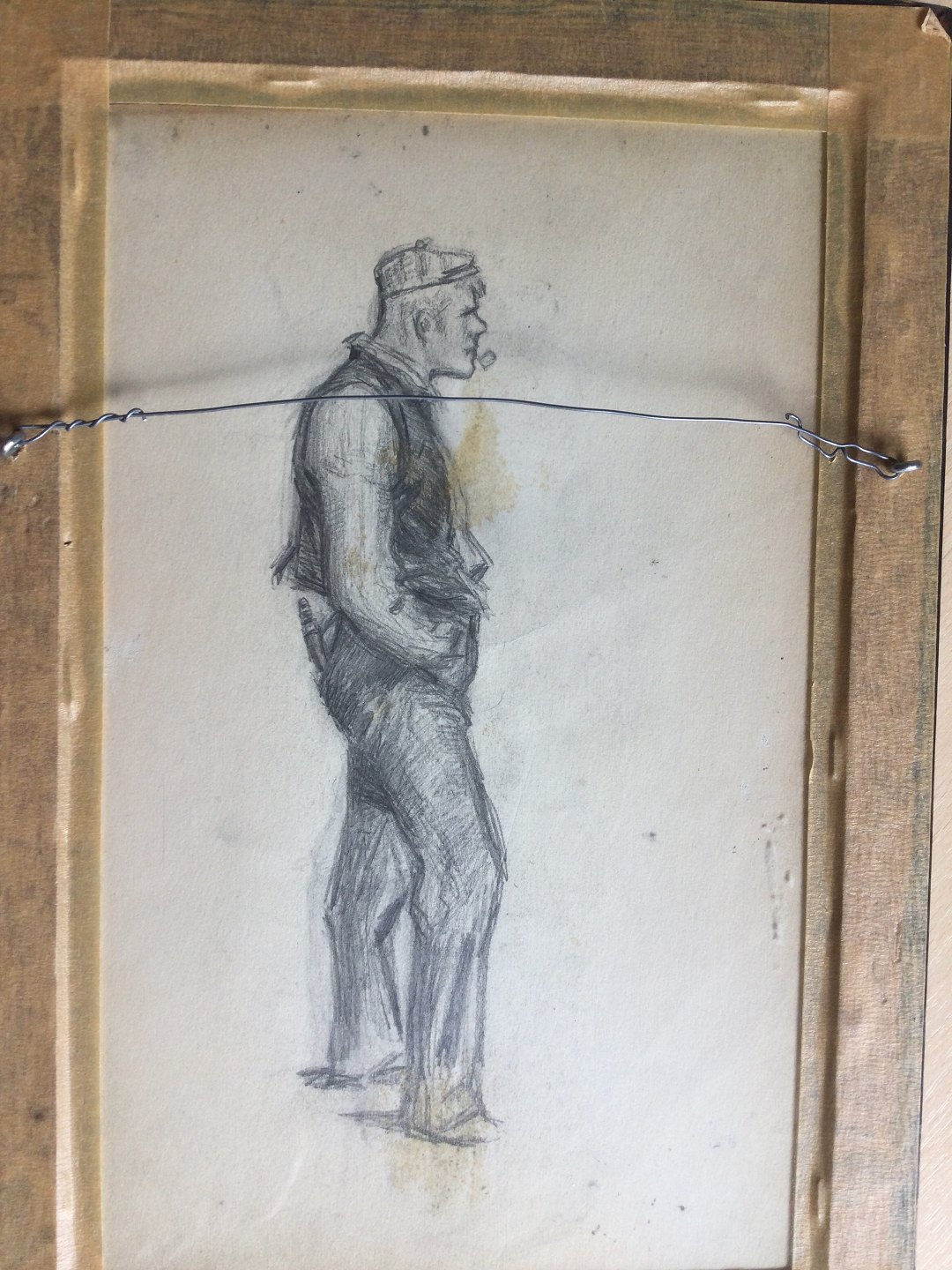 Bagpå skitse af piberygende mand