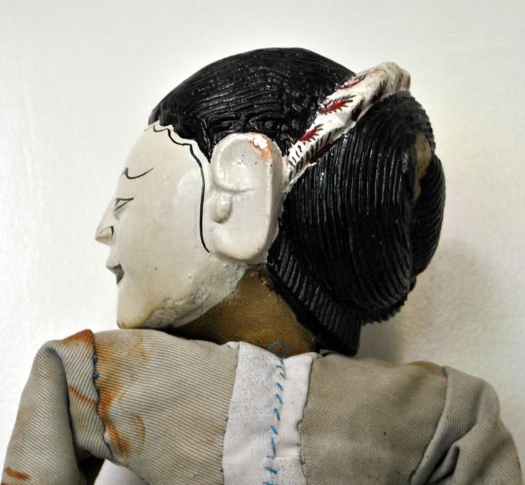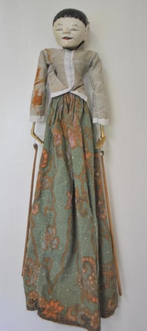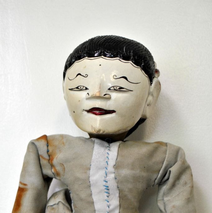 Teater dukke, Indonesien, 19. årh. Med bemalet ansigt. L.: 66 cm.