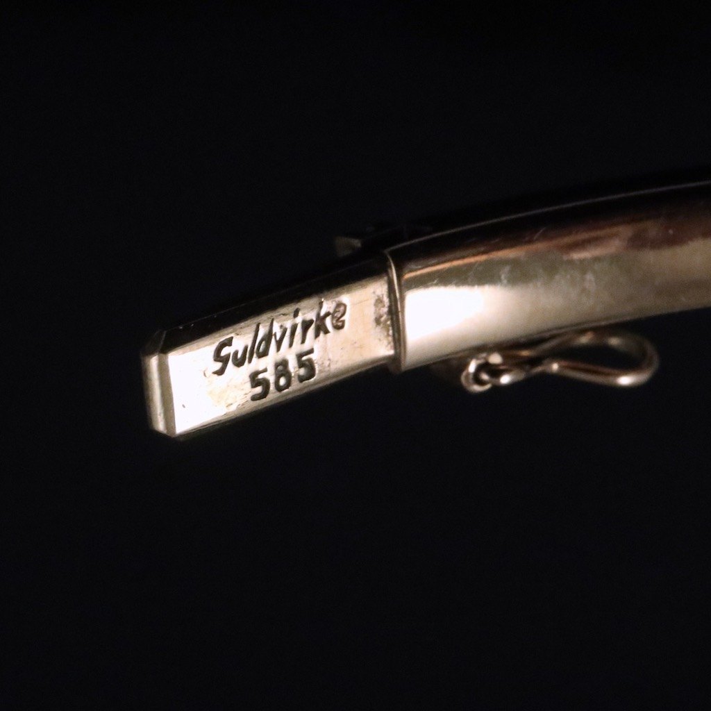 Guldvirke. Hæbgslet armring i 14k guld med perler.