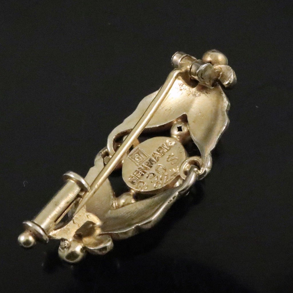 Georg Jensen. Broche i forgyldt sølv med karneol #224.