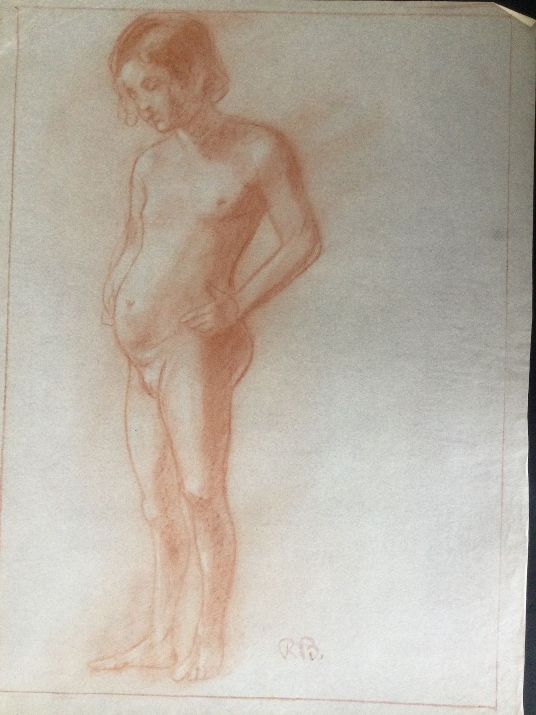 Rødkridt på papir.