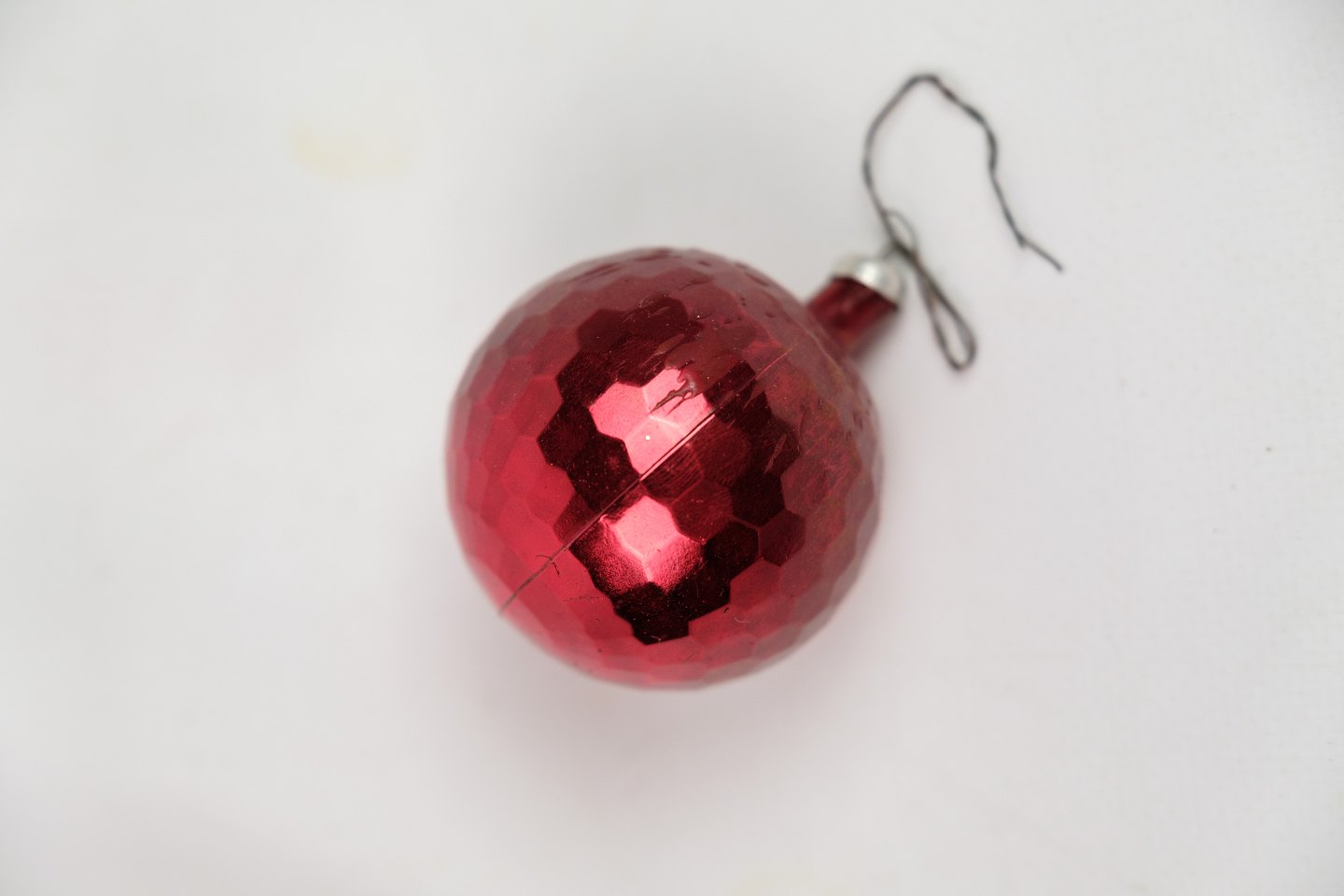Antik Julekugle i en rød farve fra omkring 1930'erne.