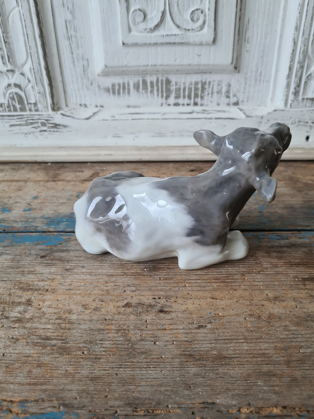Royal Copenhagen Figur - Kalv - grå og hvid broget