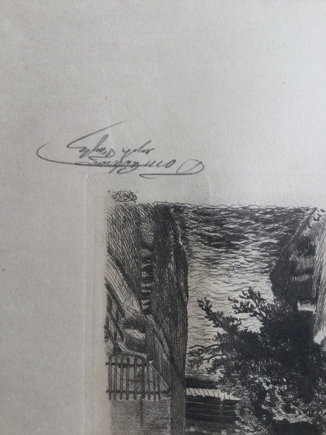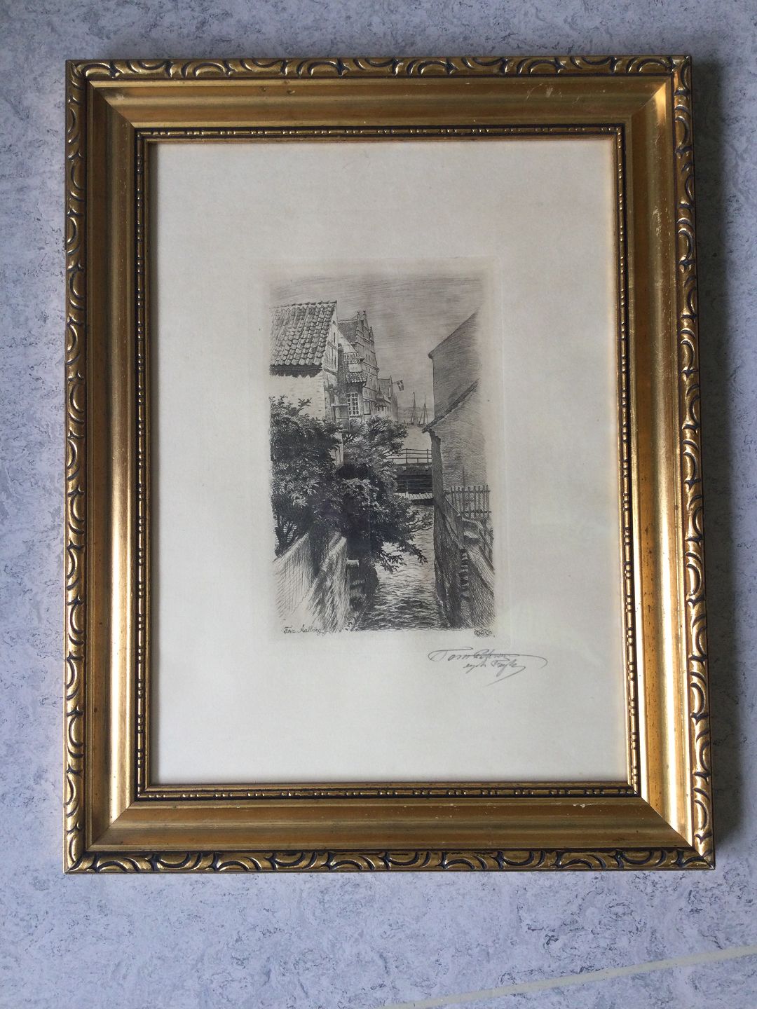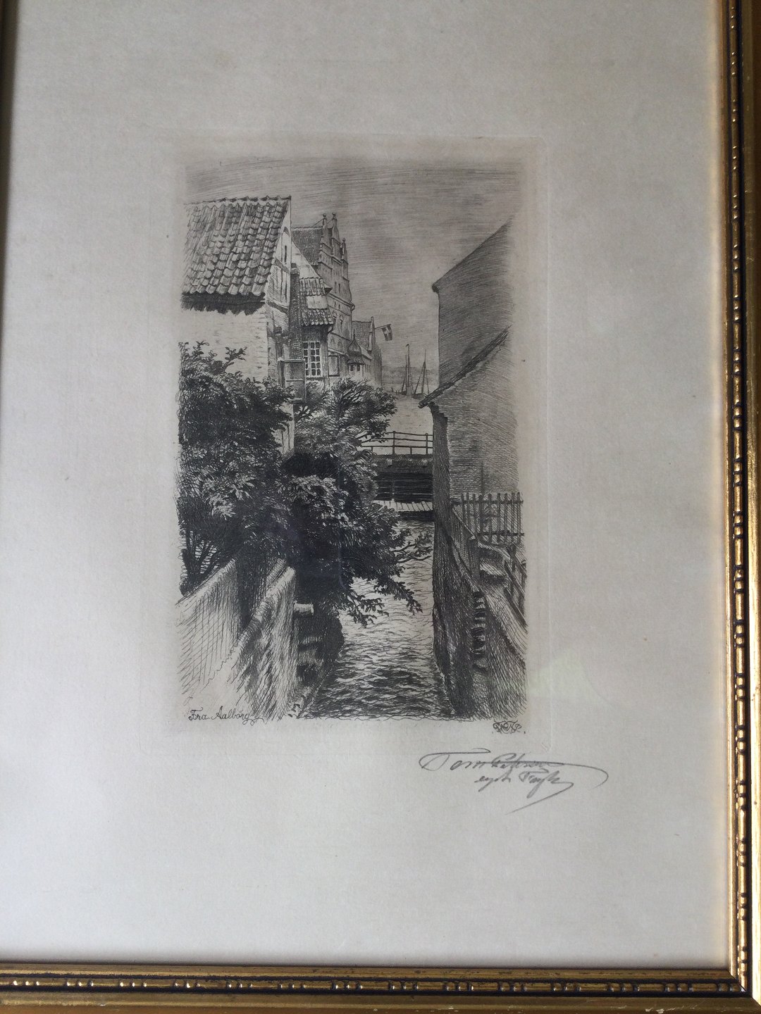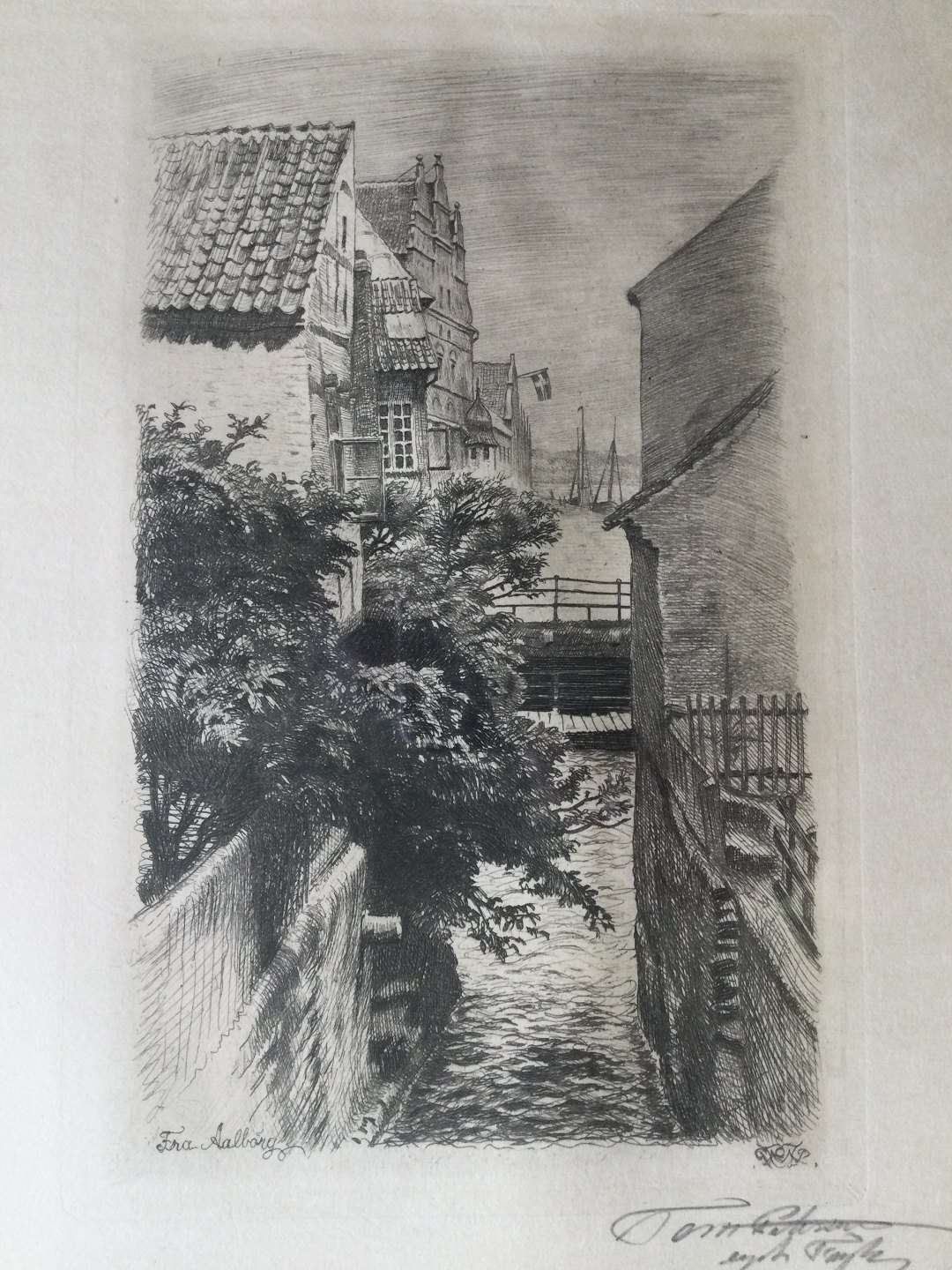 Radering af Peter Tom-Petersen - Fra Aalborg ved Apoteket 1906.