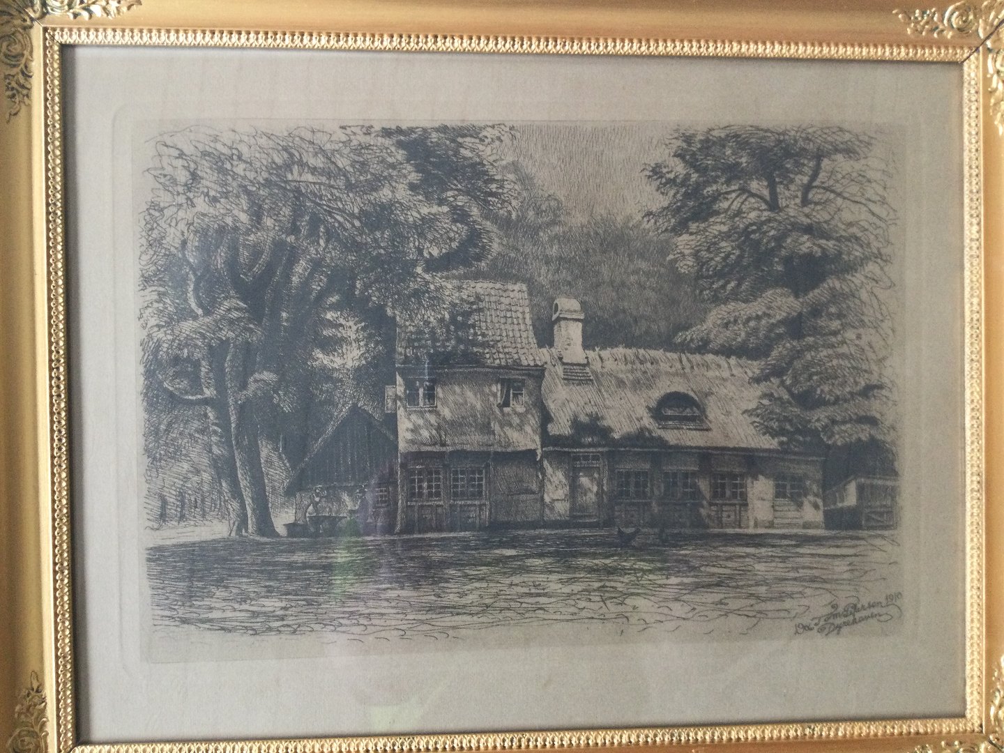 Radering af Peter Tom-Petersen - Peter Lieps Hus i Dyrehaven 1906-10.