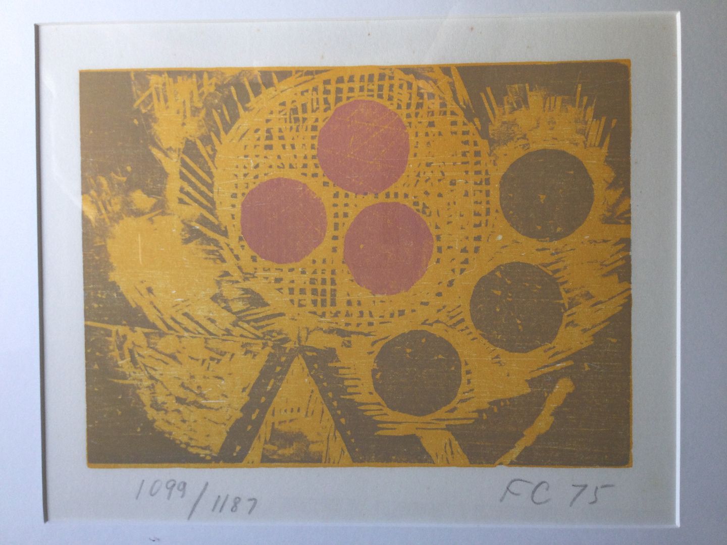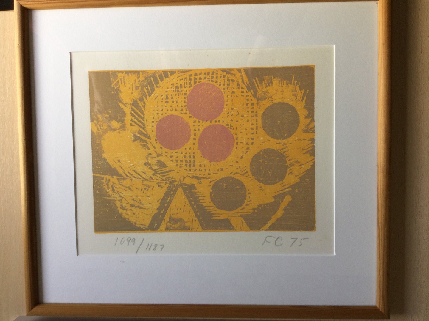 Farvetræsnit af Frede Christoffersen 1975 "Onsdag aften".