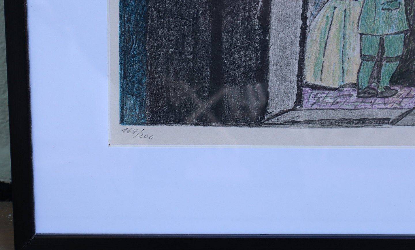 Henry Heerup Blicher ca 62 x 78 cm inklusiv træramme glas og pas partout nummeret