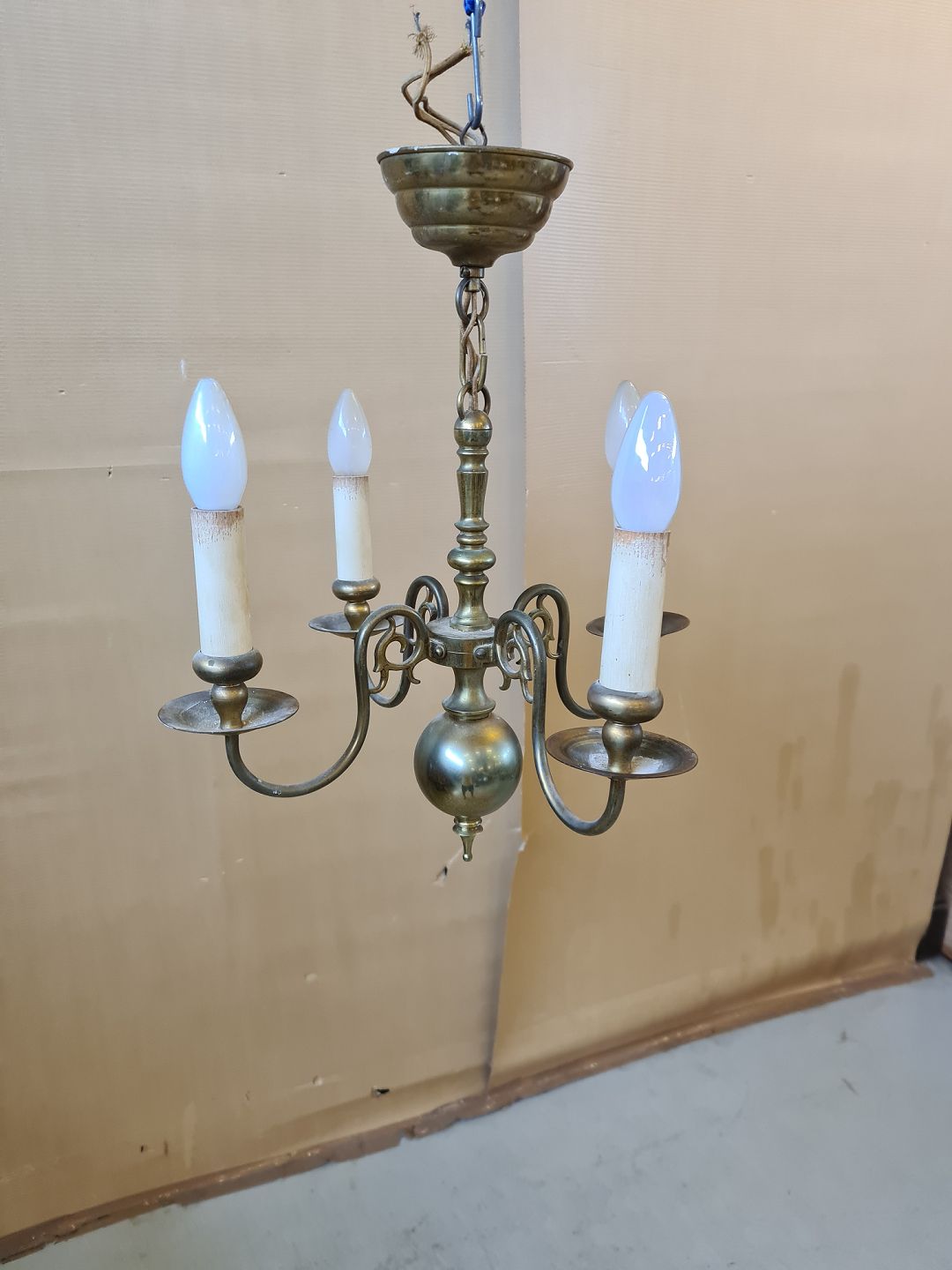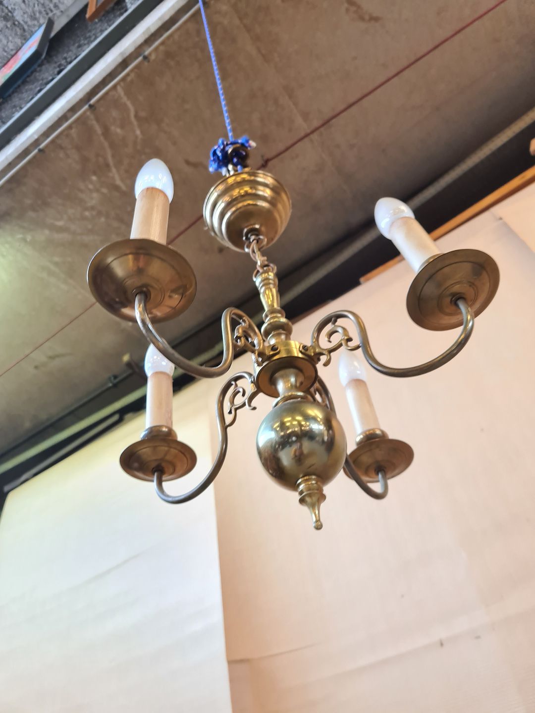 Kirkekrone i messing med 4 arme, fra 1930erne.